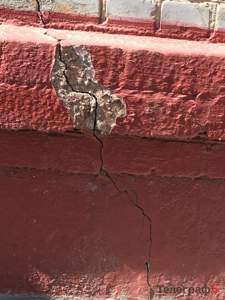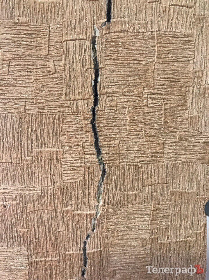Кременчужане, проживающие в пятиэтажке по ул. Гвардейской, переживают, что их дом «в один прекрасный момент разломается на 2 части». По всему дому поползли трещины: и в квартирах, и на фасаде. Магазин, который располагается на первом этаже, недавно сделал ремонт. Но за пару месяцев фасад обезобразила щель.