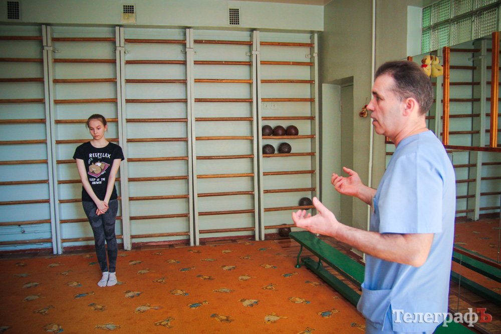 В кабинете лечебной физкультуры, с помощью юной кременчужанки Карины, занимающейся ЛФК в больнице уже около года в связи с проблемами с осанкой, Александр продемонстрировал релакс-упражнения, нацеленные на снятие напряжения определённых мышечных групп, что помогает в борьбе с депрессией: