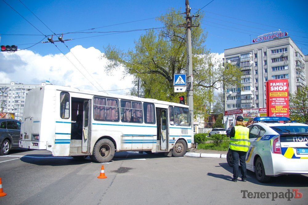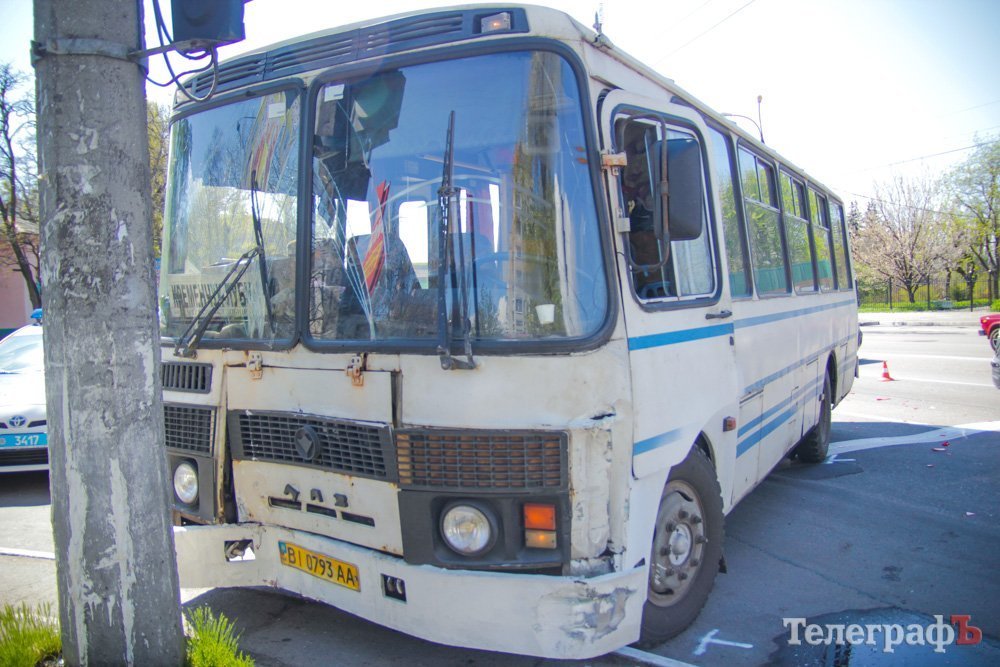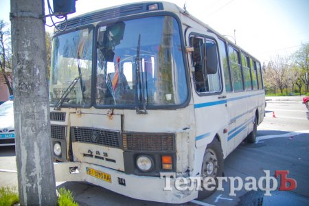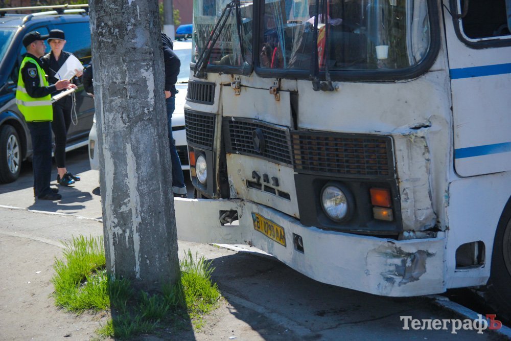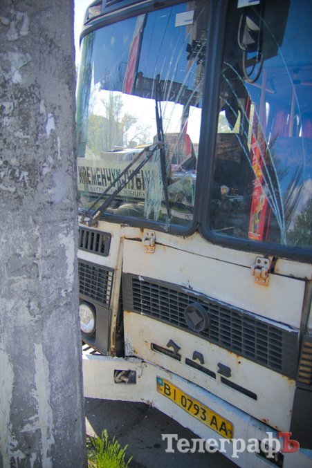 В Кременчуге, в районе электростанции автобус «ПАЗ» въехал в электроопору. Как сообщают очевидцы, 14 апреля, около 12.00, автобус «Кременчуг-Лубны» двигался по просп. Свободы в сторону Водоканала. В районе пешеходного перехода он врезался в автомобиль Audi Q7 с киевскими номерами, а после врезался в придорожный столб, перегородив движение по правой полосе. По предварительным данным, у автобуса отказали тормоза, потерпевших среди водителей и пассажиров нет. На месте работает полиция.