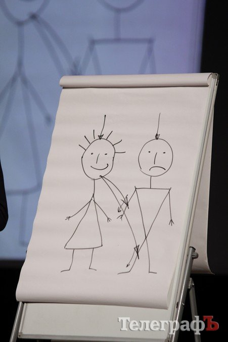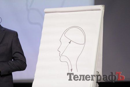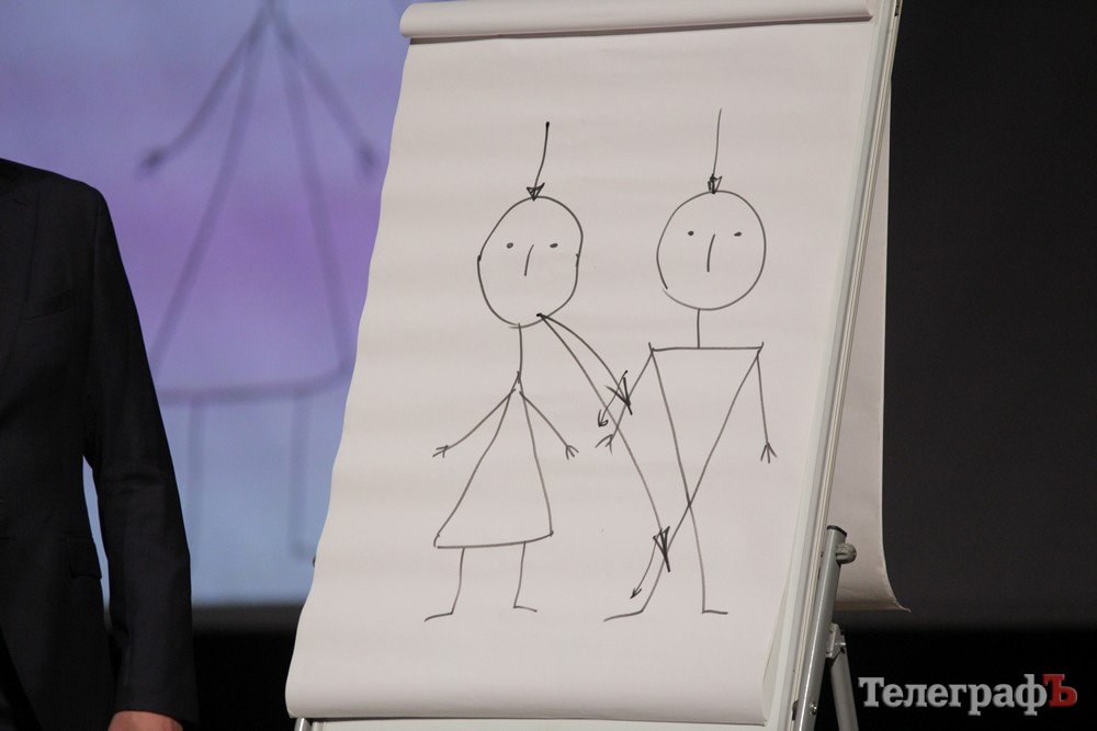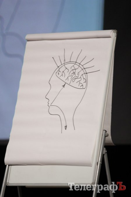 Валерий Жидков рисует строение мозга женщины.