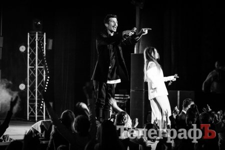 Бонус к программе — это приход кременчужан Артема и Насти. Они только утром поженились, а вечером уже танцевали под хиты «Время и Стекло». Это умилило артистов, и они поздравили молодоженов со сцены. "Горько!", - закричали звезды. Ну, традиции надо уважать. Артем и Настя целовались под прицелом множества камер. Будет что вспомнить.