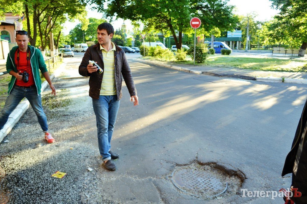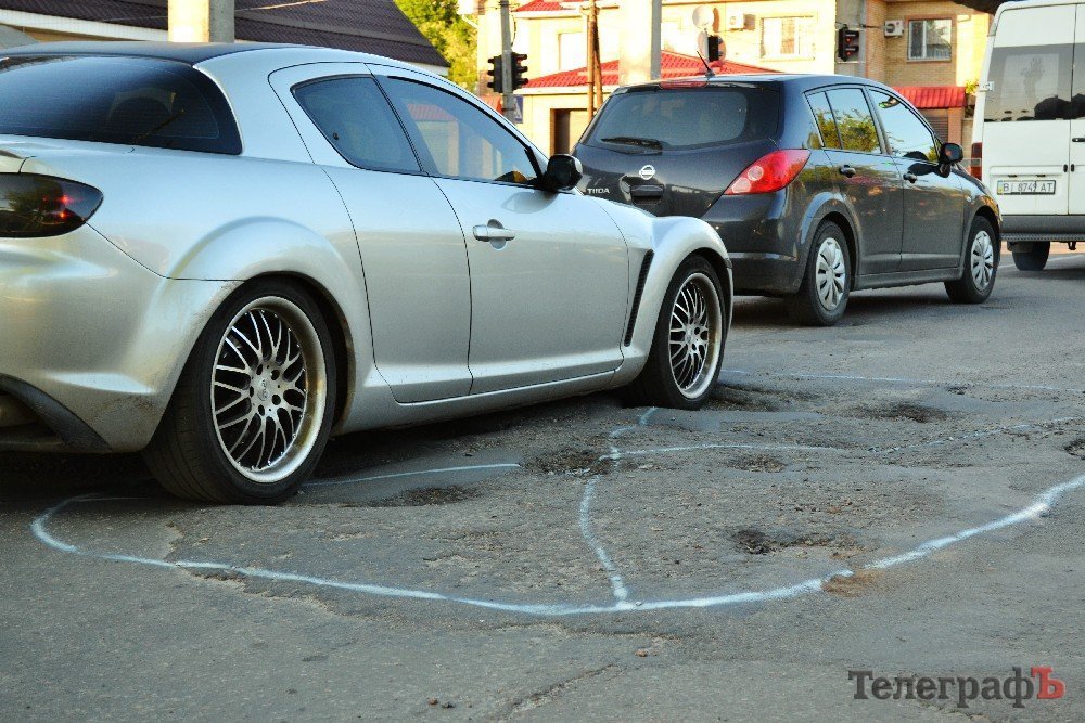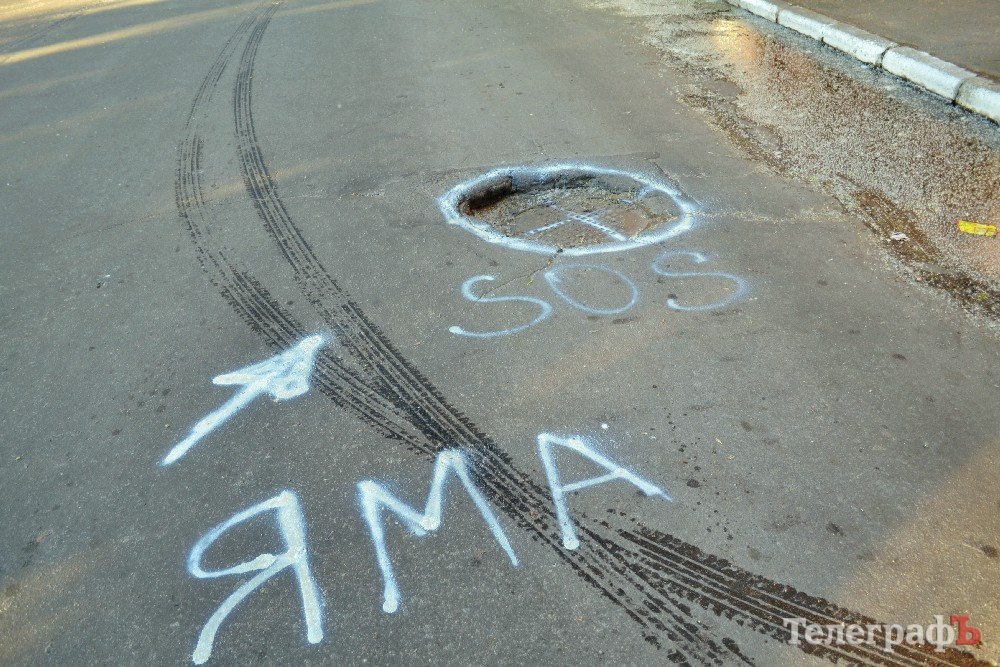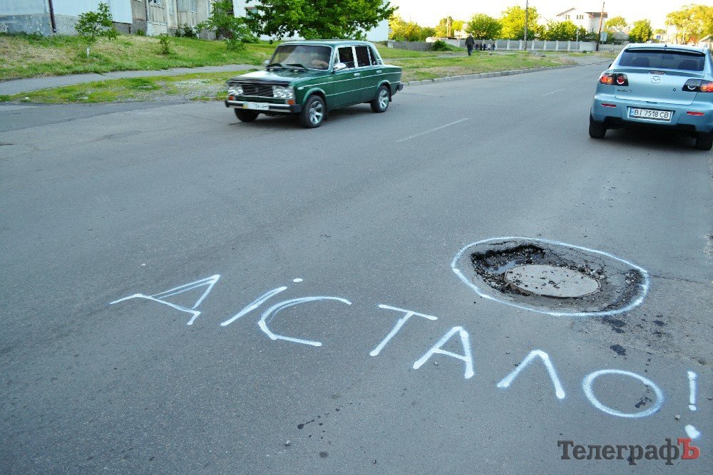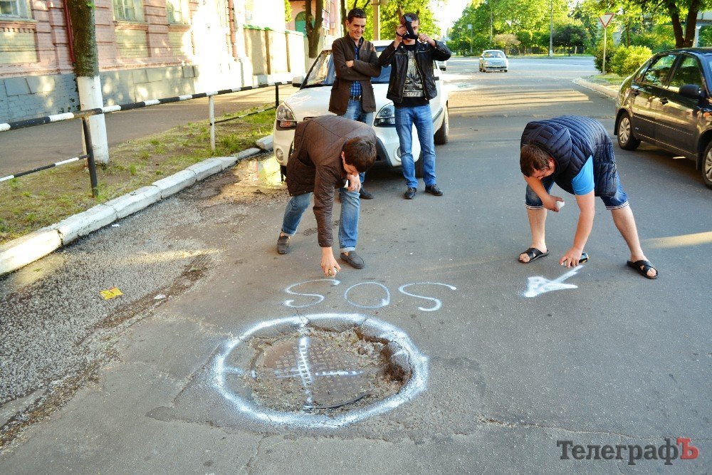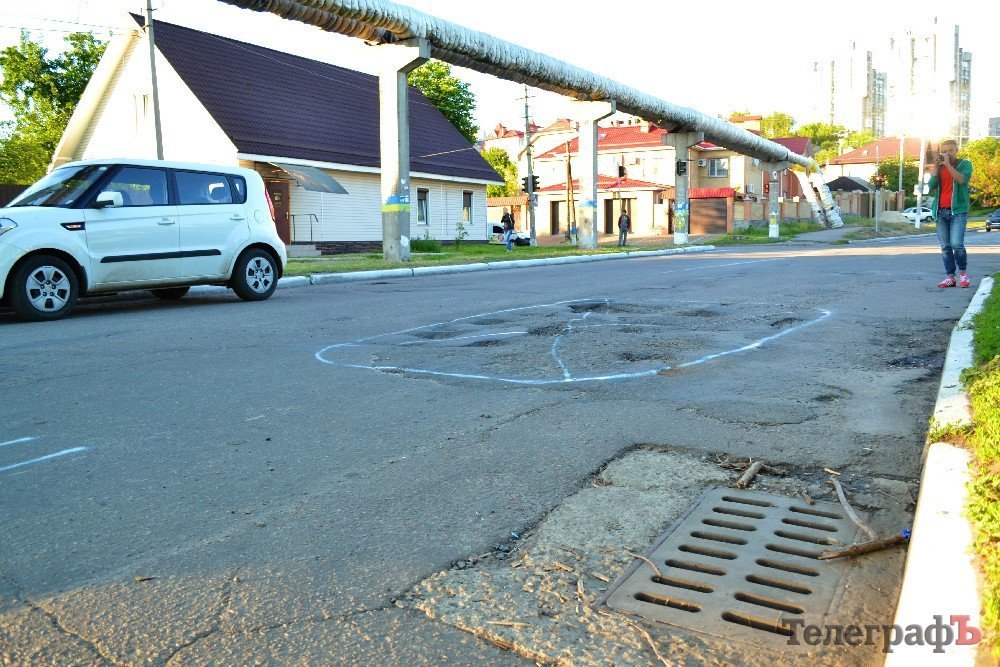 Вечером 22 мая кременчугские автомобилисты из сообщества взаимопомощи на дорогах Drive Help Kremen провели акцию на ул. Чкалова и Европейской – пометили ямы белой краская, а некоторым присвоили имя мэра.