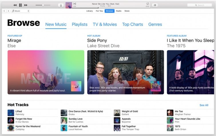 Сервіс Apple Music було запущено 2015 року компанією Apple та вбудовано в один із основних продуктів – програму iTunes. Випущені додатки під iOS та навіть Android. Сильні сторони Apple Music: власні плейлисти, які вручну створюють працівники сервісу; власне радіо з Зейном Лоу; інтеграція з іншими продуктами компанії. Є можливість закачувати музику офлайн. Але Apple Music взагалі не має безкоштовної версії. Вартість: індивідуальний план – $4,99 на місяць, сімейний – $9,99 на місяць.