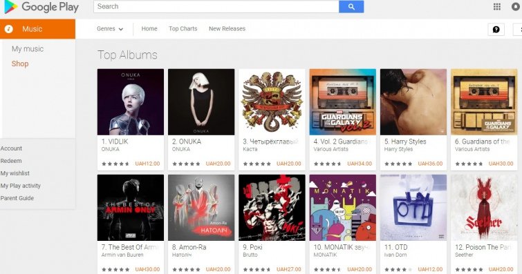У 2014-му в Україну прийшов стримінговий сервіс Google. Нині Google Play Music встановлено за замовчування на більшості смартфонів під Android. Також можна слухати на веб-сайті та скачати додаток для ПК. Google Play Music також виключно платний. Проте його вартість нижча за конкурентів - 59 грн на місяць. Так ви отримаєте необмежений доступ до величезної бібліотеки світової та української музики.