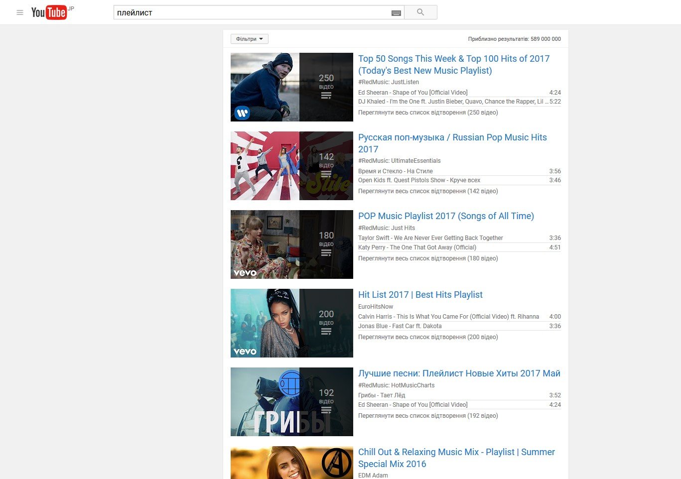 YouTube – не тільки відеохостинг, але й сховище аудіо. Артисти регулярно заливають свої треки у вигляді відеокліпів, а ще пісні часто публікуються і у форматі аудіо, коли замість відео ставиться якесь зображення. YouTube вміє самостійно складати тематичні плейлисти, але це неважко робити і користувачу. Загалом, тут можна знайти багато музики цілком безкоштовно.