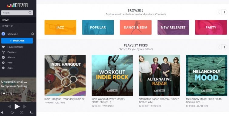 Плюси Deezer: зручна навігація, цікаві плейлисти, розумна каталогізація, простий і приємний інтерфейс тощо.
