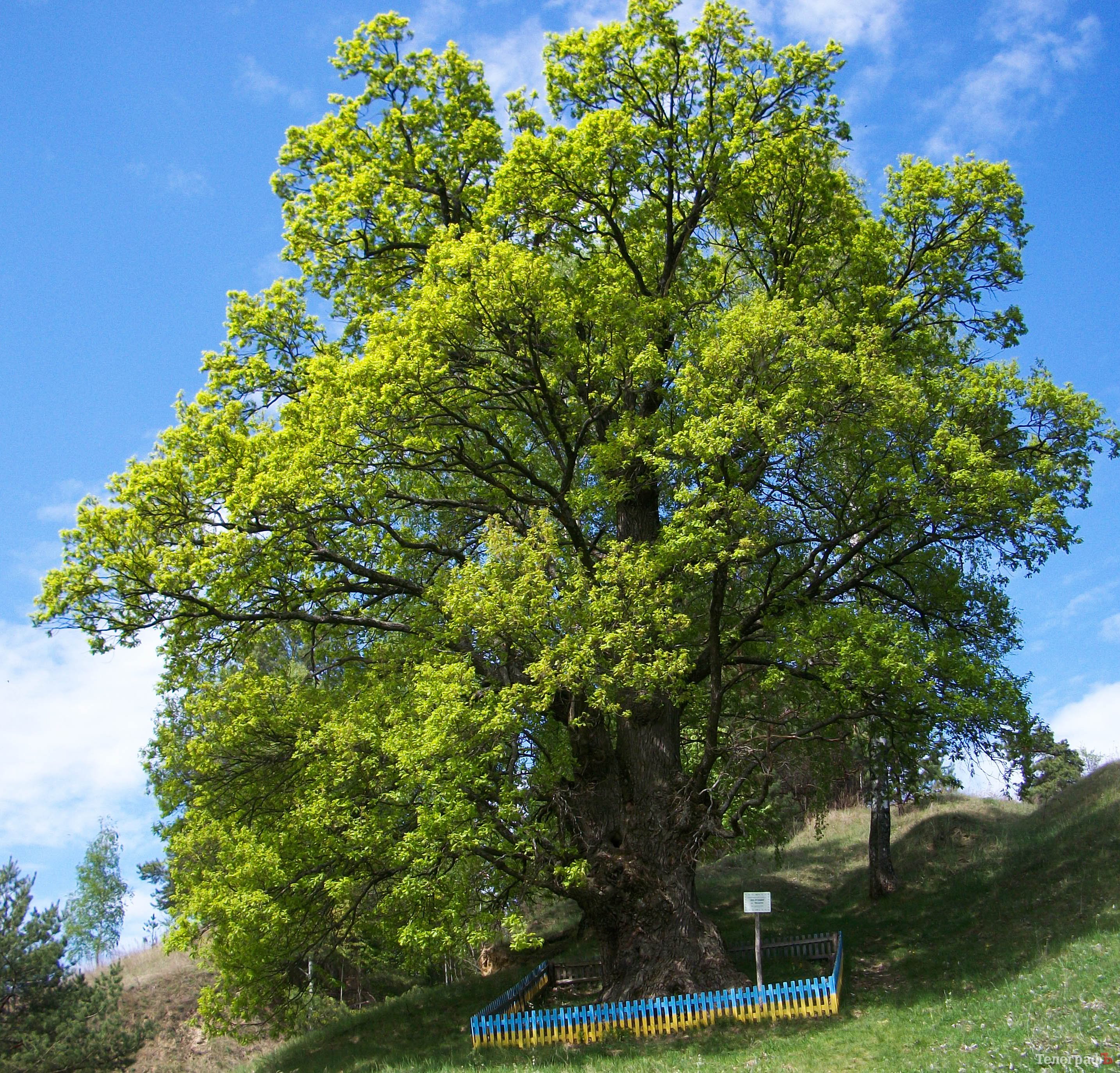 «Дуб Мазепы» – заманчиво гласит табличка на огромном дереве. За что его так называют? По словам работников парка, в этих местах разворачивались баталии между Петром I и Карлом XII. Через Десну были созданы три переправы. И, мол, как раз в этом месте, рядом с дубом, проходили переговоры между Карлом XII и Иваном Мазепой. Если подняться от этого дуба вверх, попадаешь на зеленеющие поля, где раньше стояли пушки Петра I.
