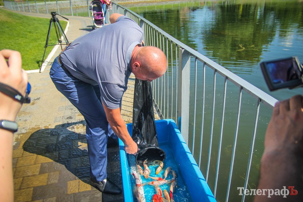 Житель Горишних Плавней Дмитрий Дробаха подарил Городскому саду Кременчуга 350 декоративных рыбок — японских карпов-кои и карасиков. Торжественный запуск разноцветной живности в озеро состоялся 6 июня. На мероприятии присутствовал мэр города Виталий Малецкий и несколько его замов.