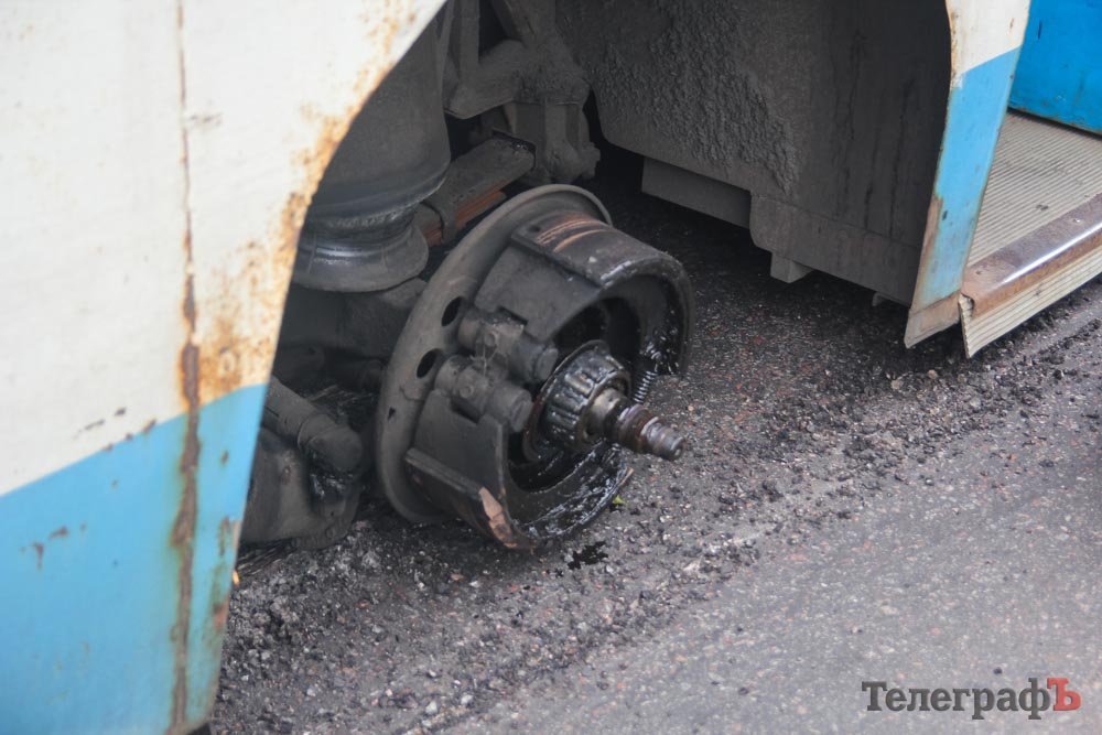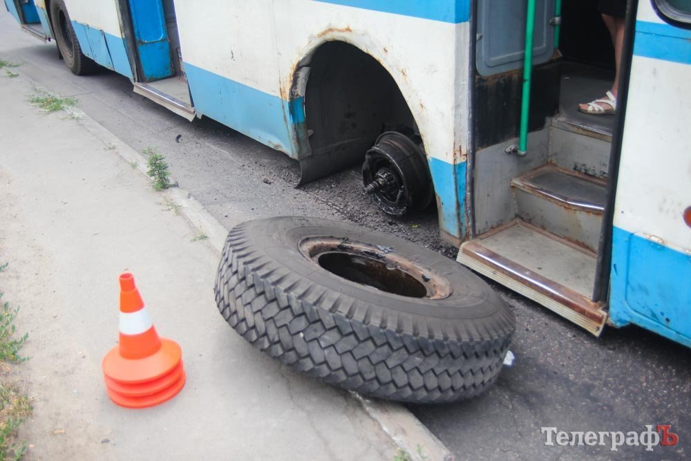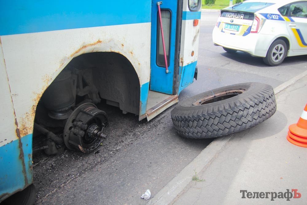В Кременчуге у троллейбуса на ходу отвалилось правое переднее колесо. Как сообщают очевидцы, это старый троллейбус, который ехал по маршруту №5. С левым передним колесом также проблемы. Инцидент произошёл на спуске с Пивзаводовского моста в сторону Молодёжного.