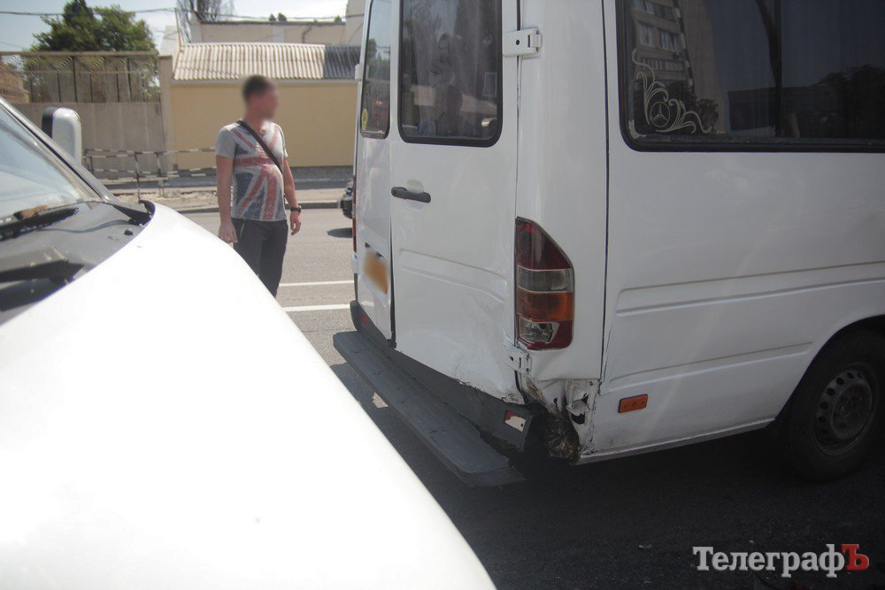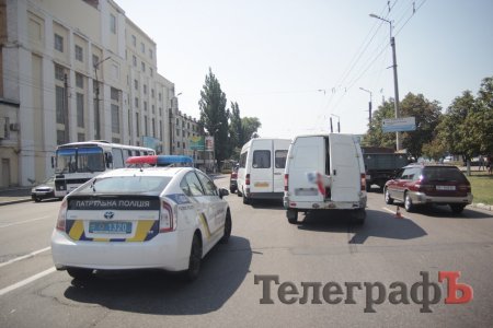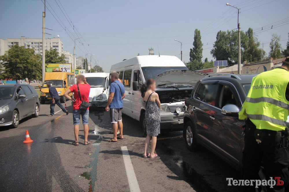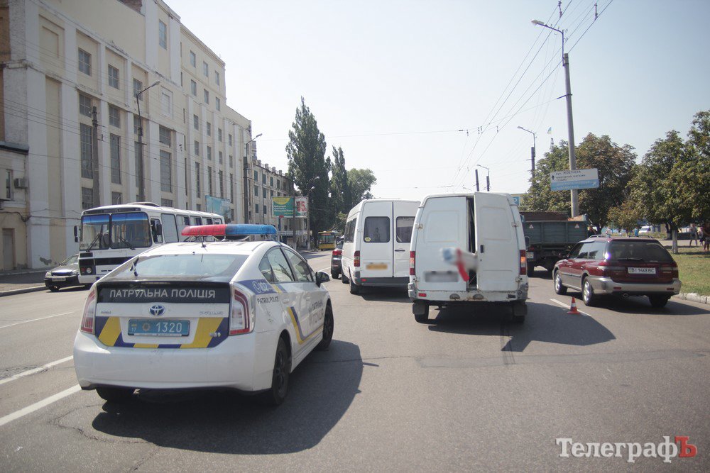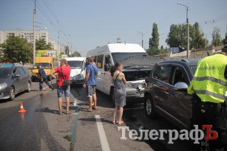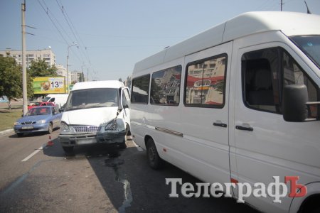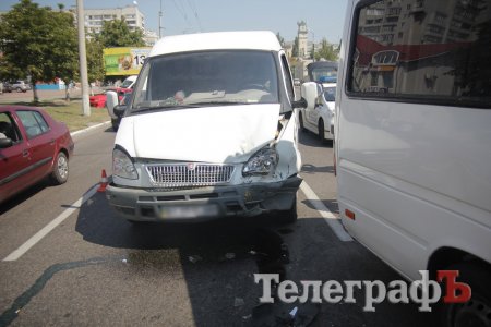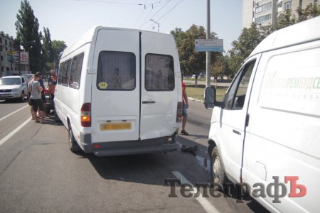 В Кременчуге между остановками «Городской сад» и «Троицкий рынок» столкнулись три автомобиля. По инофрмации пресс-службы патрульной полиции, в ДТП участвовал автомобиль Mercedes Sprinter (маршрутка), «ГАЗель» и Volkswagen.