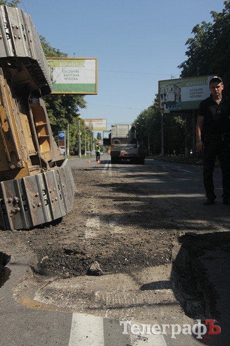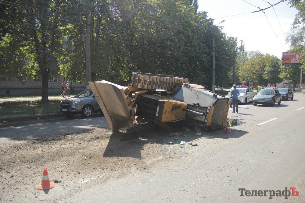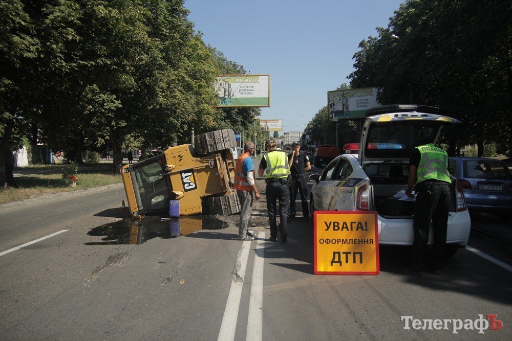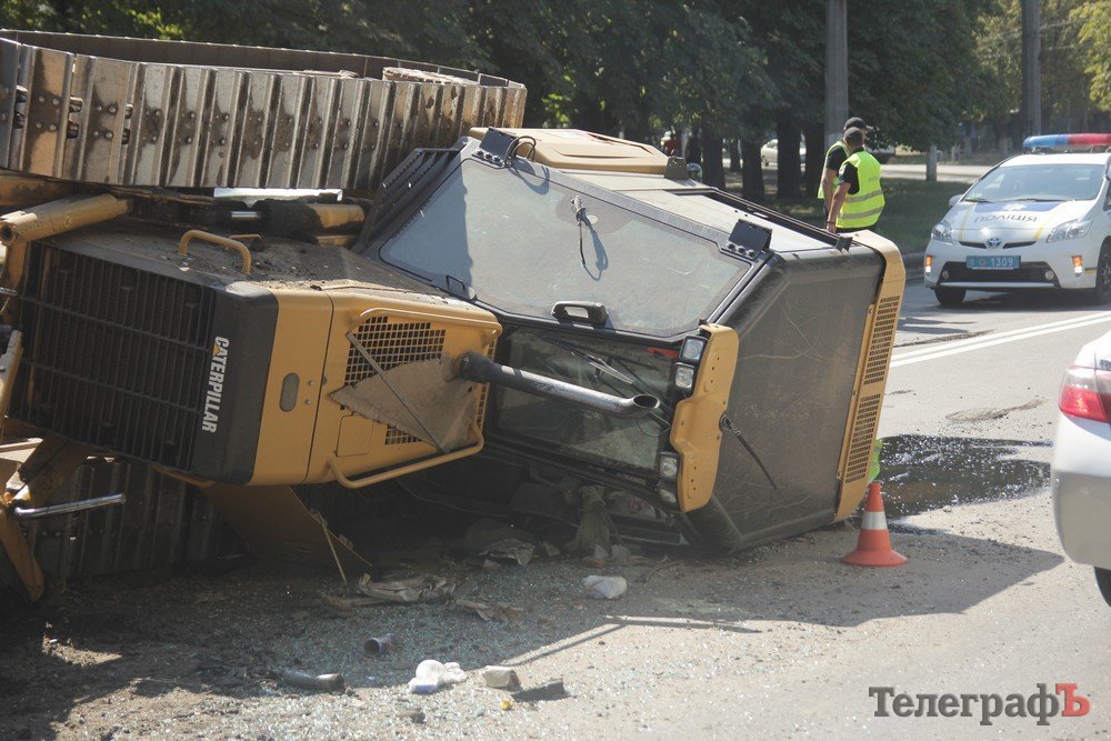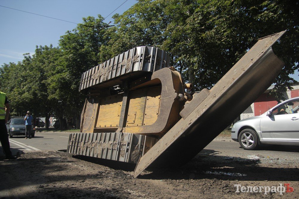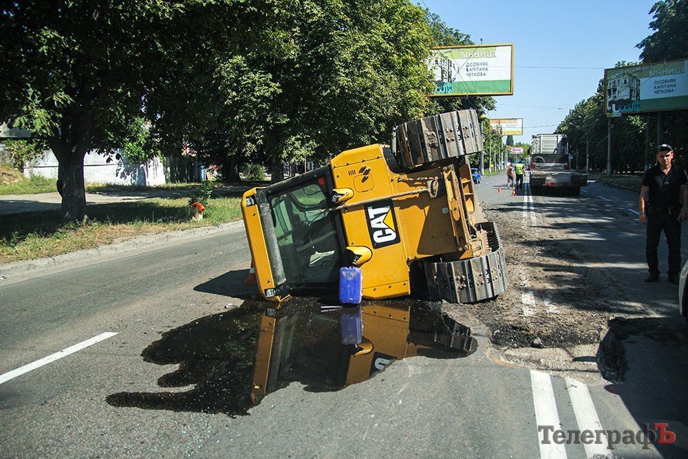 В Кременчуге на ул. Вадима Пугачева «прилег» бульдозер Caterpillar. Как сообщают участники сообщества взаимопомощи на дорогах Drive Help Kremen, ДТП произошло 7 августа около 14.15.