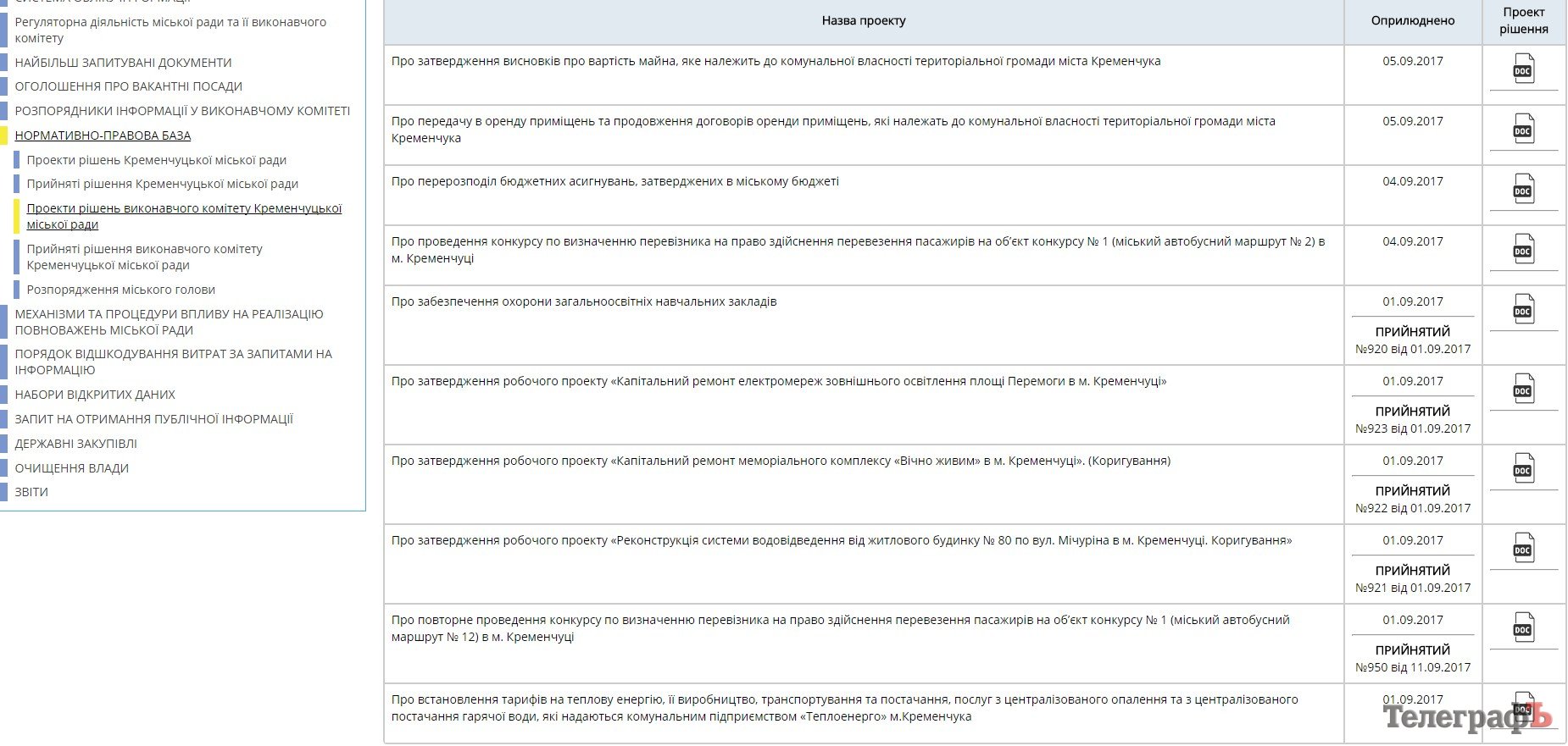 Проте процедура ухвалення рішень виконкому передбачає, що проекти рішень виконкому (не повідомлення про наміри) мають бути оприлюднені за 20 днів до їх ухвалення. Так передбачає Закон «Про доступ до публічної інформації». На запитання журналістів, коли ж був оприлюднений проект рішення, мер відповів — ще 1 вересня. Натомість представники ЗМІ слідкували за проектами рішень виконавчого комітету — 1 вересня проекту ніхто не бачив, хоча його очікували та щодня перевіряли сайт мерії — після заяв про наміри змінити тарифи. Відтак або це був проект-невидимка, або всі міські журналісти «сліпі», або проект рішення усе ж таки був оприлюднений «заднім числом».