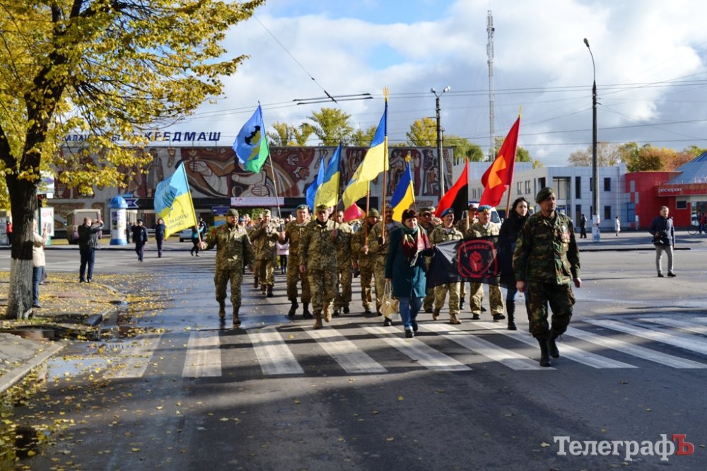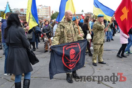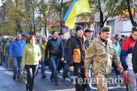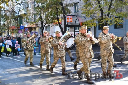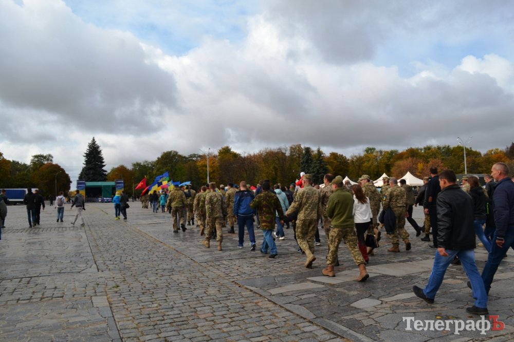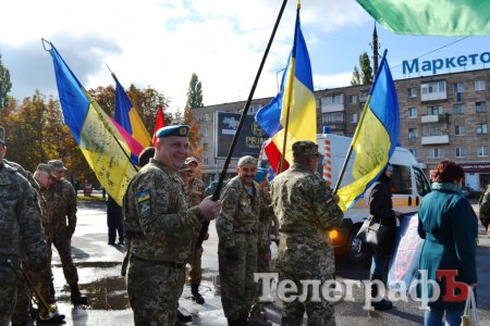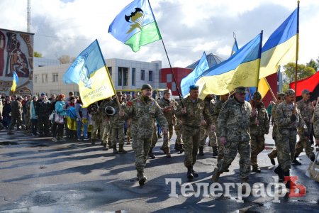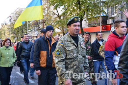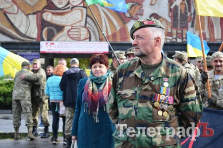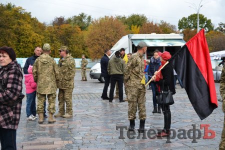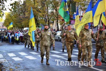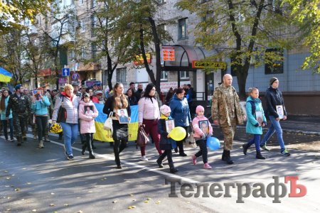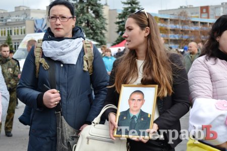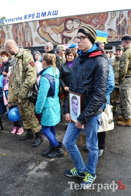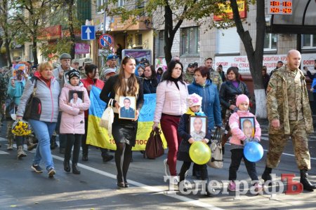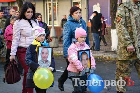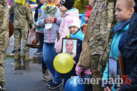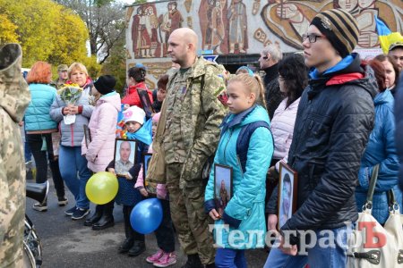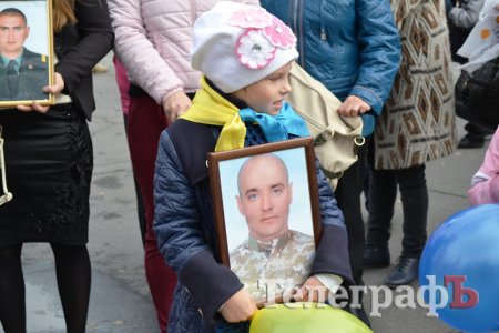 Сьогодні, 14 жовтня у День захисника України військові з різних куточків країни приїхали до нашого міста щоб пройти маршем. Прийшли і родини загиблих Героїв. Їхні діти із гордістю несли портрети своїх батьків.