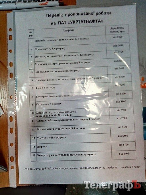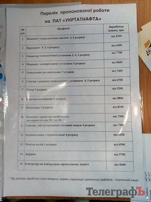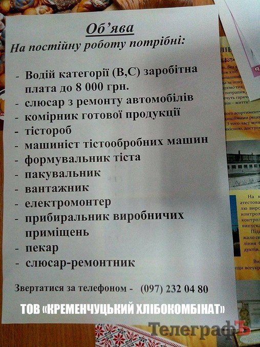 Дворник на «Укртатнафте» – от 5700 грн, уборщик территории «Полтавобленерго» (должность для инвалида) – около 3300 грн, подсобный рабочий в ТРК «Европа» приблизительно также. Детальнее о вакансиях на предприятиях Кременчуга и о ситуации на рынке труда, читайте в печатной версии газеты «Кременчугский Телеграф».