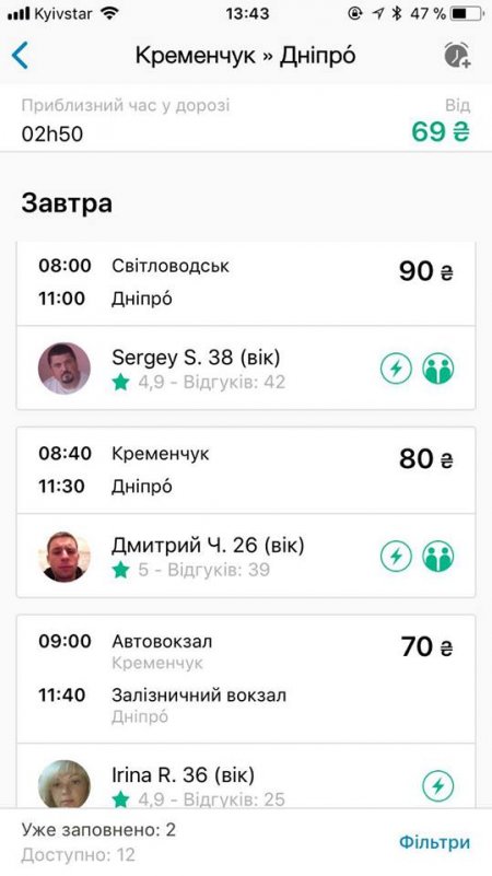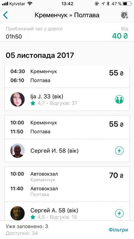 Аналогичные цены на все направления и у перевозчика «15-56». На их сайте расценки ещё не поменялись: 220 грн - Киев, 170 грн - Харьков, 120 грн - Днепр и 80 грн - Полтава.