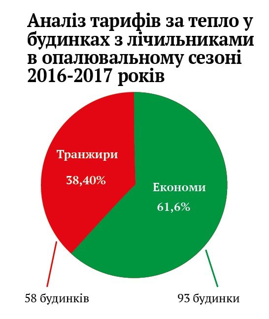 Саме з цим тарифом слід порівнювати «транжир» та «економів» (середній тариф за 5 повних місяців опалювального сезону у будинках з лічильниками).