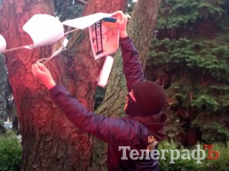 - Ми вважаємо, що сквер не можна забудовувати, а зараз депутати хочуть узаконити кав'ярню. Ми проти, тому виражаємо свій протест, - зазначив голова ГО "Національний корпус" Ярослав.