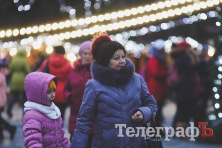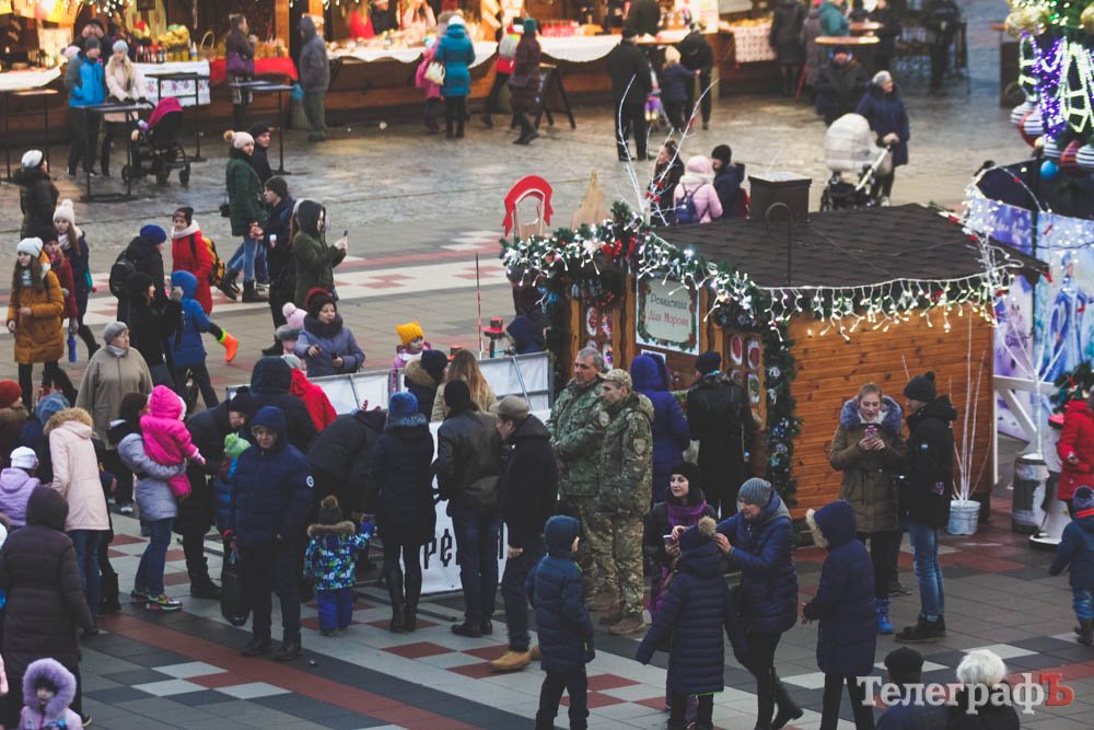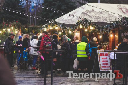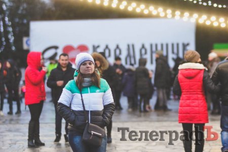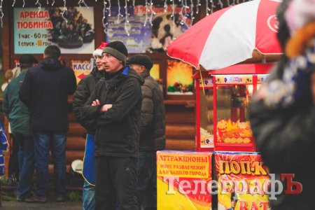 Сегодня людей было не мало – площадка перед сценой была «забита». Начал работать новогодний городок и аттракционы, включая горку (разовый спуск – 10 грн, час катания – 60 грн).