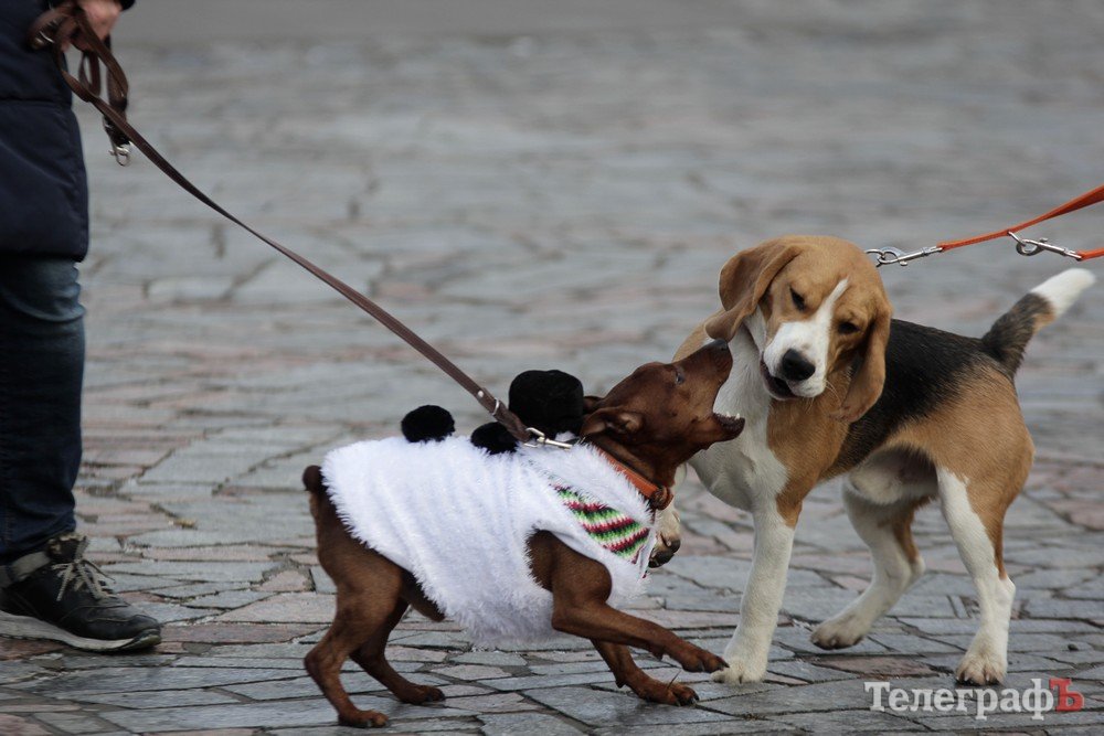 Сегодня, 23 декабря, в Кременчуге возле главной новогодней елки города на площади Победы проходит костюмированный парад собак. Организатор мероприятия - голубевод Геннадий Тертычный, известный проведением в городе Всеукраинского костюмированного парада животных «Кубок Хатико» и Всеукраинских выставок голубей.