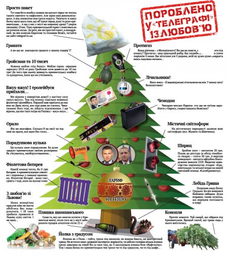 Наша новорічна красуня ніяк не могла обійтись без подаруночків. І їй таки зробили: привезли зі Львову купу сміття. І не одну…
