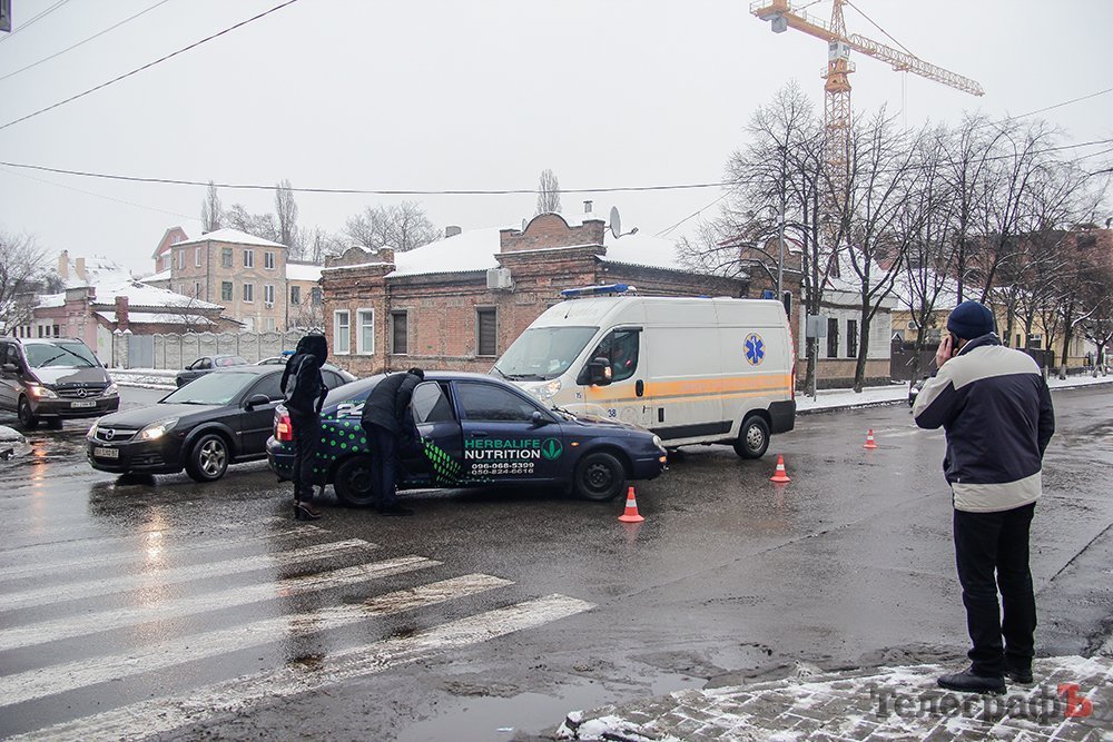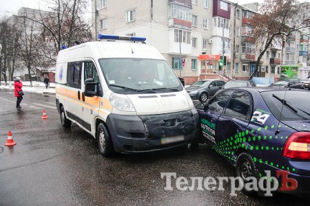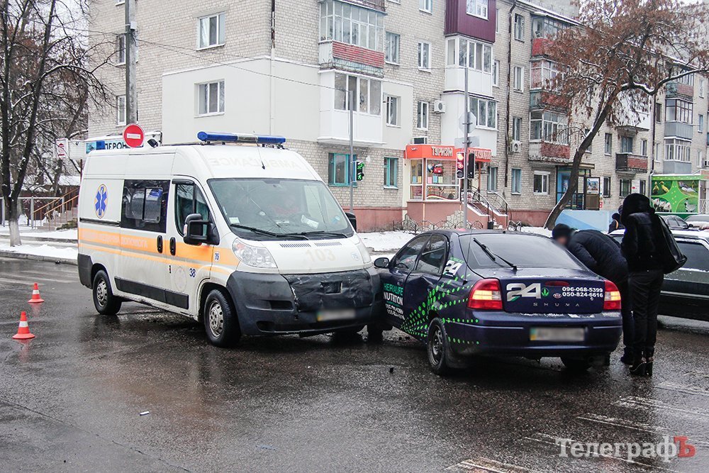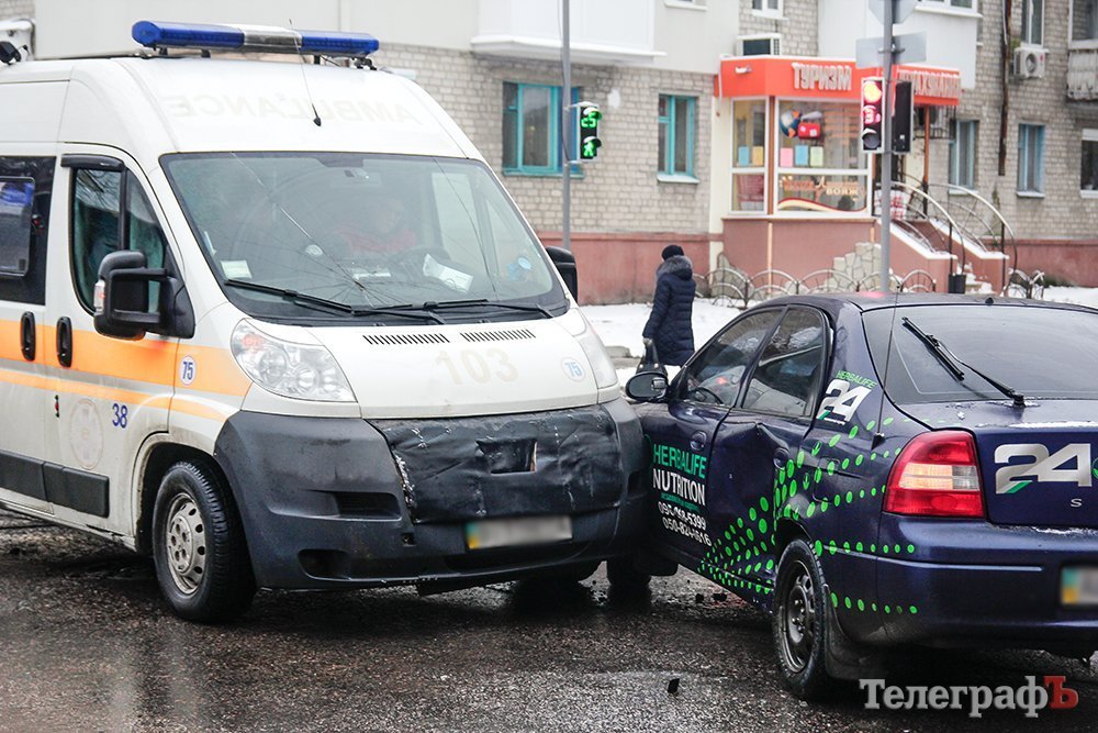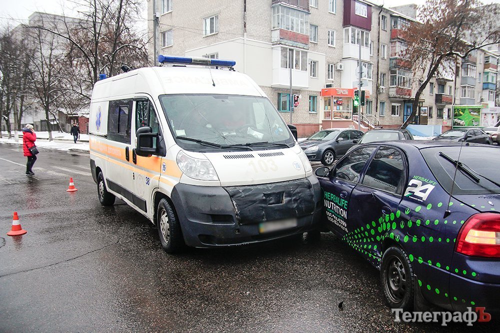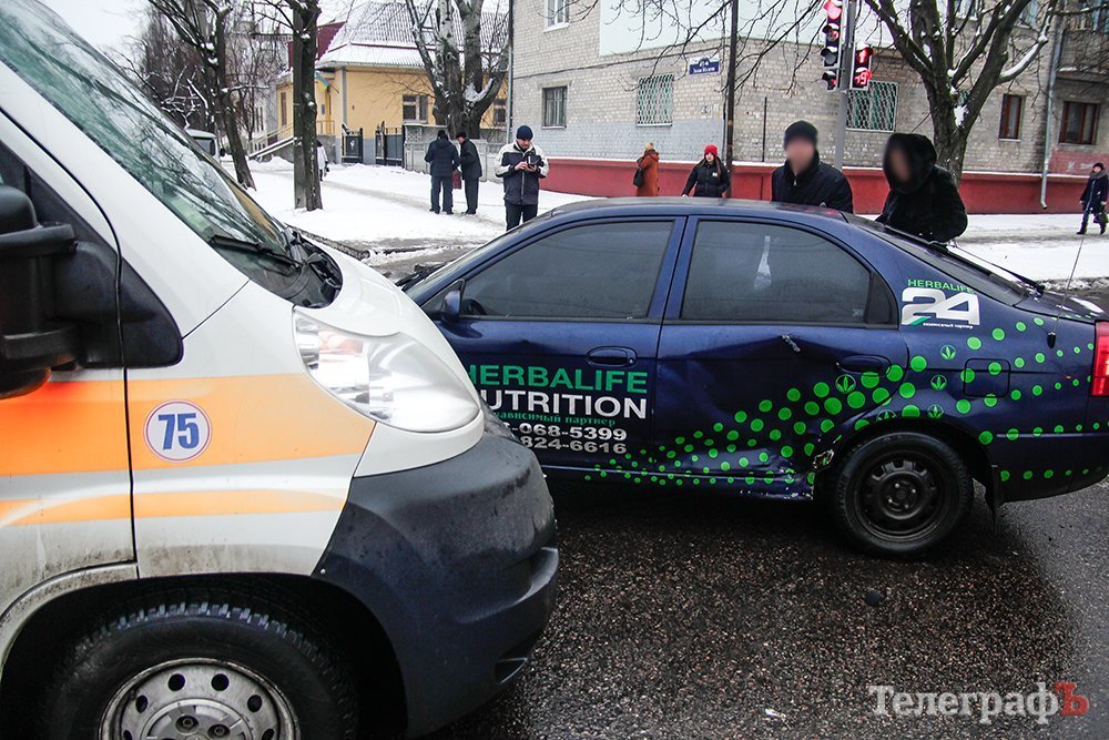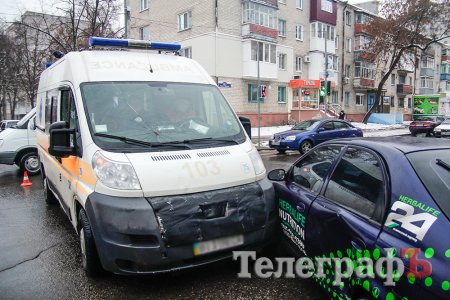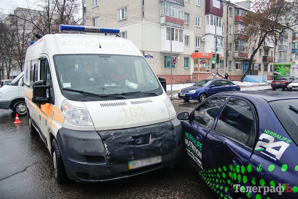 На «мистическом» перекрёстке «скорая» въехала в легковой автомобиль. Машина скорой помощи двигалась по ул. Шевченко на красный сигнал светофора и врезалась в автомобиль, который выехал на перекрёсток с ул. Ивана Мазепы. Обе машины перед столкновением снизили скорость.