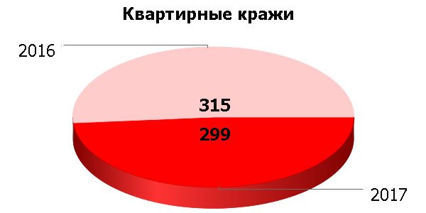 Квартир в этом году обокрали на 16 меньше (299 в 2017 против 315 в 2016 году).