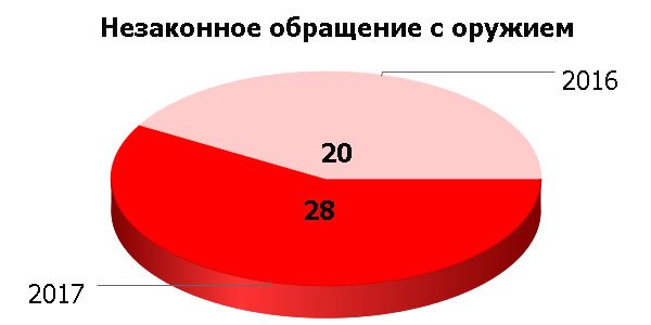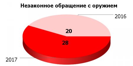 Увеличелось количество оружия. В 2017 году по факту незаконного обращения с оружием открыли 28 уголовных производств, против 20 в 2016. Среди изъятого 15 единиц огнестрельного оружия (пистолеты), 3 газовых пистолета, 2 револьвера, 12 гранат, 12 ножей,