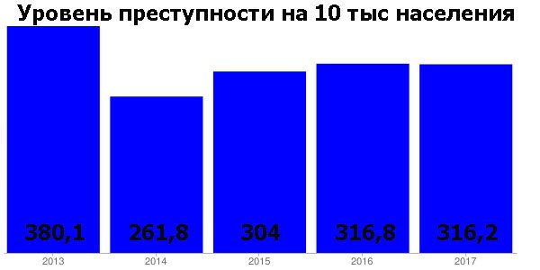 Уровень преступности в городе не изменился в сравнении с 2016, а общее количество зарегистрированых преступлений вернулось на уровень 2015 года