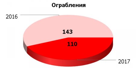 Количество разбойных нападений уменьшилось в 3 раза. 5 в 2017 году против 15 в 2016. Правоохранители раскрыли их все.