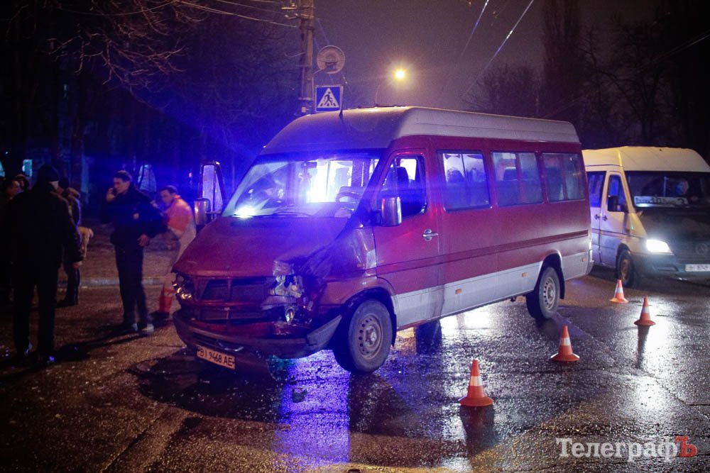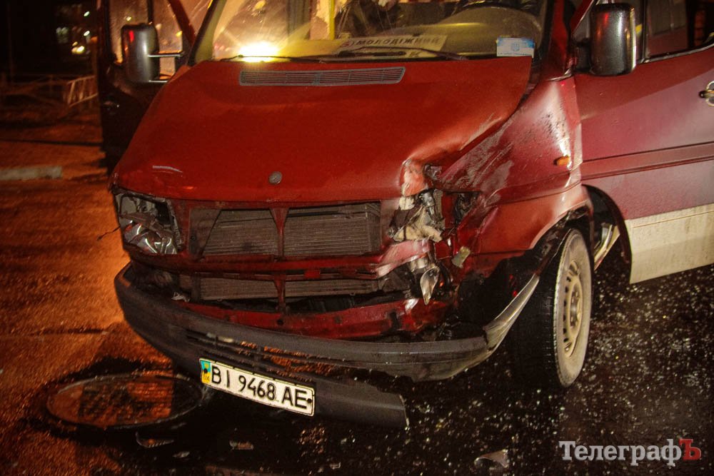 В результате аварии пострадала женщина, пассажир маршрутки, – её повезли в больницу «Кременчугская». Также получил ушиб ноги ещё один пассажир – молодой человек. У водителя маршрутки разбита переносица, но он не обратился за медицинской помощью.