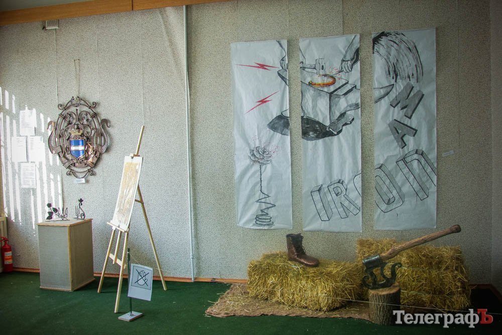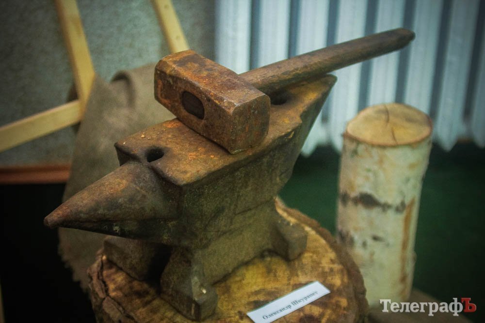 Кременчук – місто фортеця, місто-фенікс, котре зникало і народжувалося знову. У нас прекрасні природні ландшафти, тут проходив Шовковий шлях. Кремінь – козацька станиця, місто хліборобів та працьовитих людей. Ця тема розпочинає виставку. Кована традиція має прадавні джерела, але справжній розквіт стався за часів Потьомкіна, коли він започаткував зброярний завод та запросив тульських майстрів до Кременчука. Сила ковальська потоком полилась у наше місто. Та в Кременчуці завше були і військові гарнізони. Як розповідає історик і краєзнавець Євген Бергер, при кожному артилерійському полку були конюшні та свої полкові ковалі. За річкою Крива Руда стояло понад 20 кузень. Діяли ковальські артілі і на вулиці Шевченка, і на колишній Грецькій та Театральній.