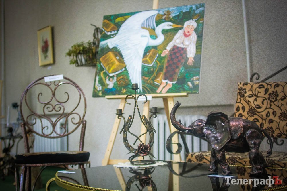 За кілька тисячоліть до нашої ери завзяті ковалі знали спосіб холодного кування. Золото, срібло та метеоритне залізо перетворювали на справжні шедеври. Все змінилося, коли до справи долучився бог вогню Гефест у Греції, Вулкан сприяв римлянам, а слов’янам роздмухував полум’я сам бог небесного вогню Сварог! Гаряча ковка була відома і нашим пращурам. Навколо Кременчука у кожному селі, та й у місті, були свої майстри на постійних правах. У стаціонарній кузні майстрували горн, ковадло, міхи, була і довбня з водою для гартування металу. В таку майстерню-зброярню нерідко заглядали козаки з Дикого поля. Реманентні ковалі виготовляли та лагодили інструменти для селян: чи то сапку, чи косу, або ж рогач та молот. Майстри начиння правили ключі та підкови. А вже більш заможне панство замовляло у ковалів художньої ковки грати з мудрими візерунками, дивовижні свічники. У куті з ковальським начинням атмосферно вписався натюрморт художника Миколи Попова. Кут сараю зі всіляким сільським мотлохом написаний монохромно, в колориті старих голанців. Легкі й динамічні замальовки коней Любові Новік розкривають секрет переплетеного ціпка з замком. Це тяжкі пута для коней. Ними прив’язували тварину до ноги та тину, аби ніякий циган не вкрав.