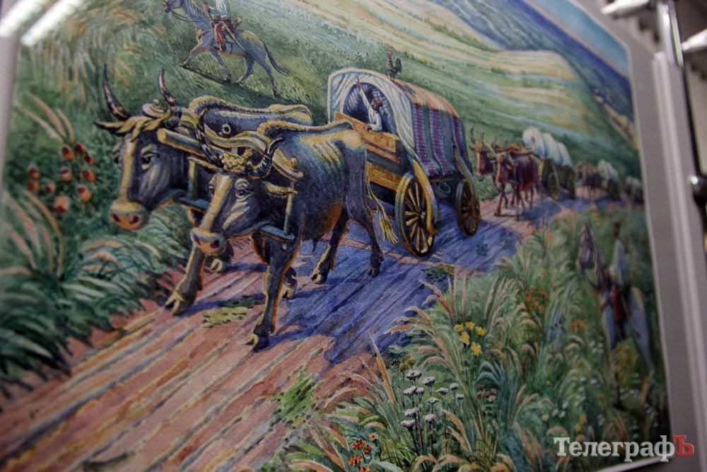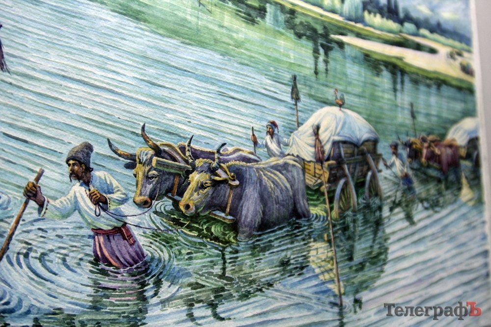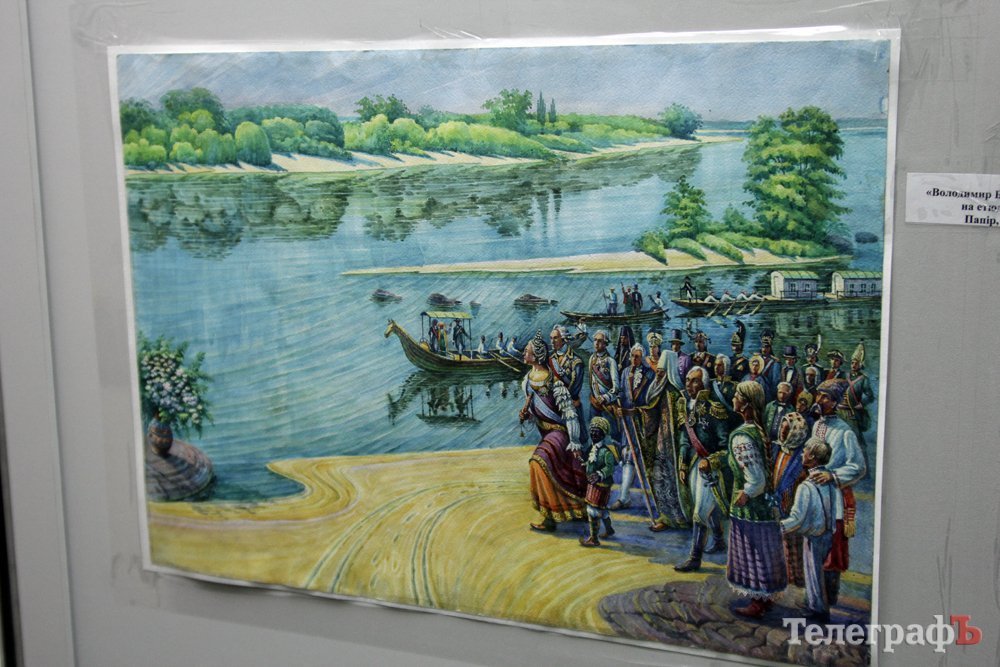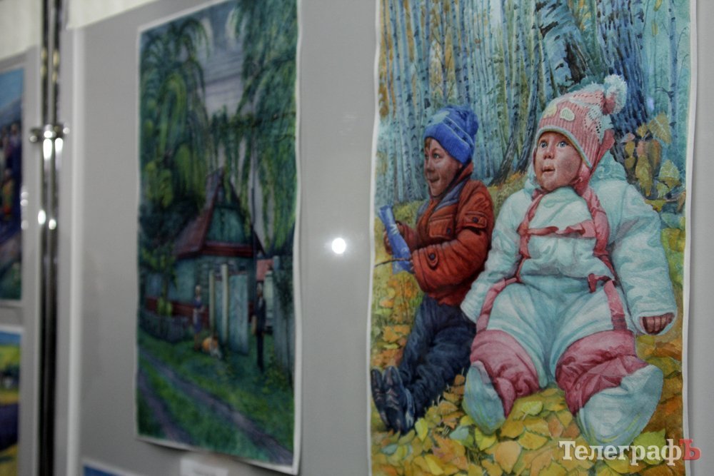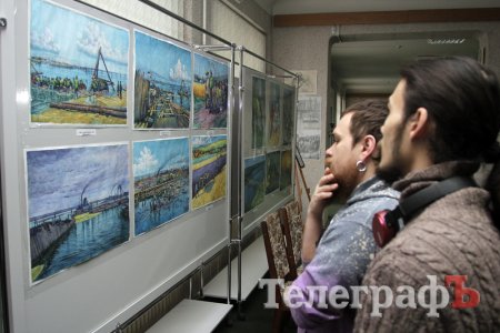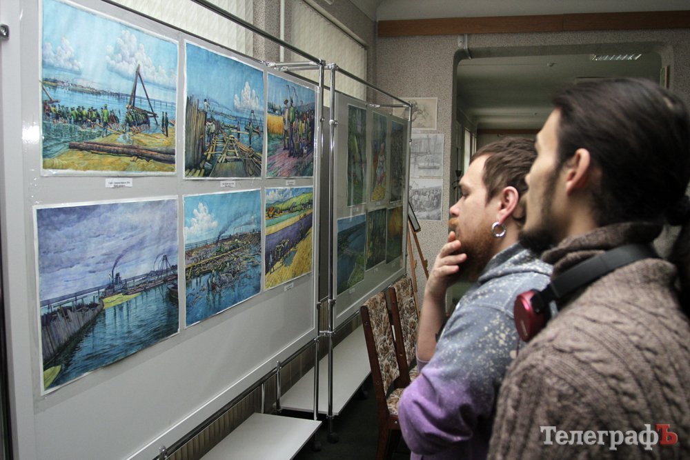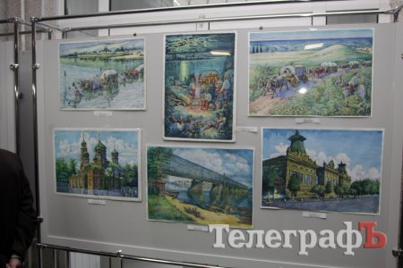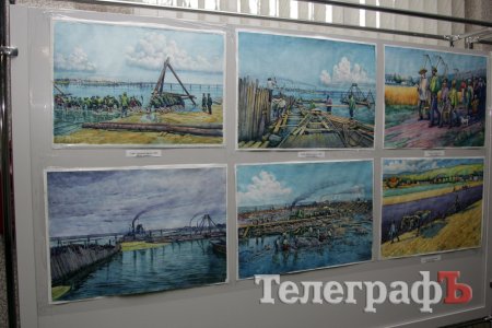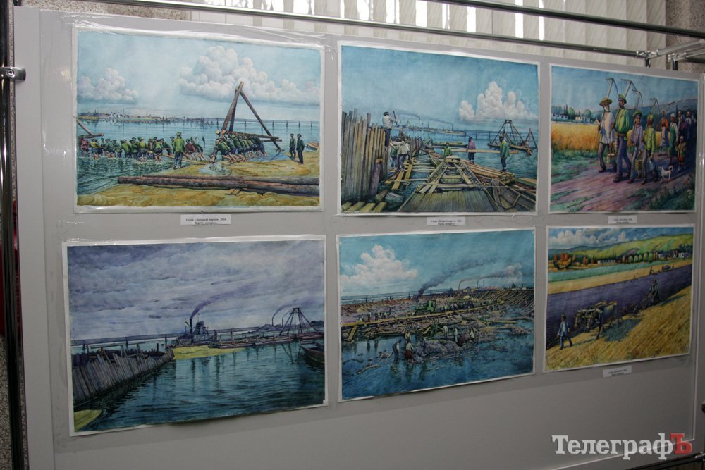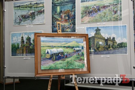 На виставці в Кременчуцькій художній галереї представлені 24 акварелі та чотири графіки на тему історії Кременчука та власних життєвих спогадів. Але, доки діяла виставка, Маестро написав ще один «свіжий» твір: «Чумаки ремонтують воза». Ця акварель вже стала частиною експозиції. Тож поспішайте побачити колоритні чумацькі сюжети, розлогі степи, відчути пахощі куліша при місячному сяйві, далекі події приїзду імператорських осіб та Кременчук початку ХХ століття з червоними трамвайчиками і прекрасними соборами. Всім відома акварель із першим залізничним мостом через Дніпро. Таку картину художник повторив майже 100 разів, настільки вона популярна! А поруч із історичними картинами та першими яскравими спогадами дитинства втілена сучасність: всім знайомий сквер ім. О.Бабаєва на тлі військового шпиталю, портрет милих серцю правнуків. Відверто кажучи, таких майстрів акварельного живопису не так багато в Україні.