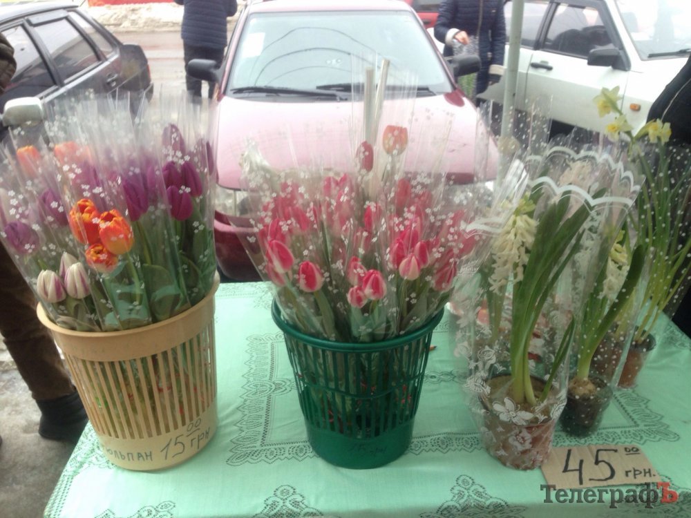 Охочі заощадити можуть вибрати ірис по 25 грн за квітку або гвоздики – від 15 грн. А особливо романтичним і невибагливим натурам можна презентувати вербу – букетик можна придбати буквально за 10-15 гривень.