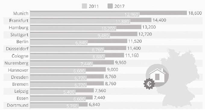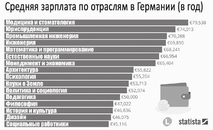 Средняя зарплата – 1500 евро на руки (Дюссельдорф). Это если человек работает на заказчика, он не инженер или не высокооплачиваемый квалифицированный рабочий.