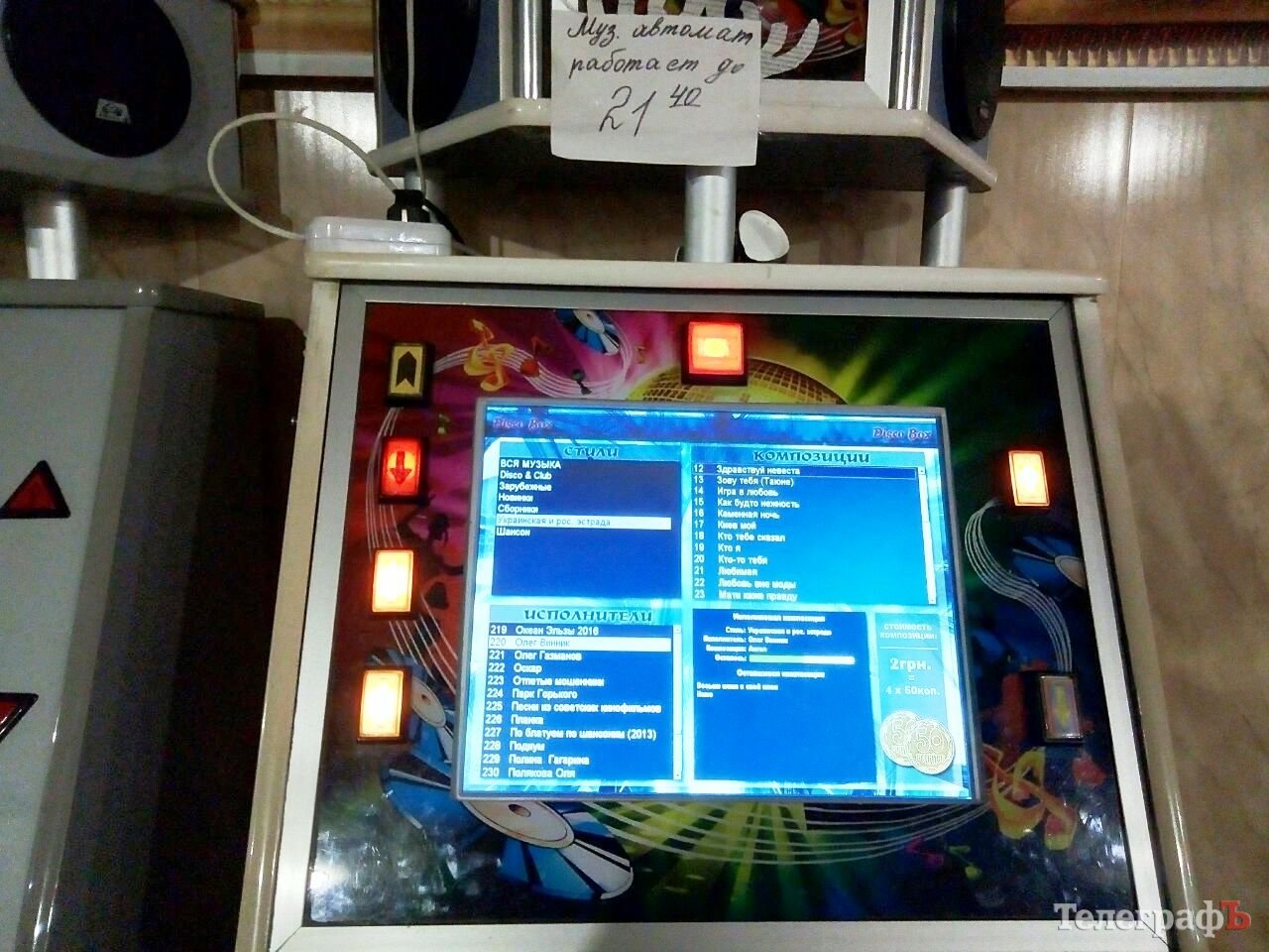 Украшение зала – музыкальный автомат родом откуда-то из 90-х. Заявки принимает до 21.00. Из него торчит побитый жизнью червонец, который машина отказалась принимать. Выбор музыки предсказуем. Мы мало знакомы с шансоном, как и с творчеством Олега Винника, но вариантов просто нет. Хочешь-не хочешь, будешь курсе, кто поет «не покидай, мой Ангел».