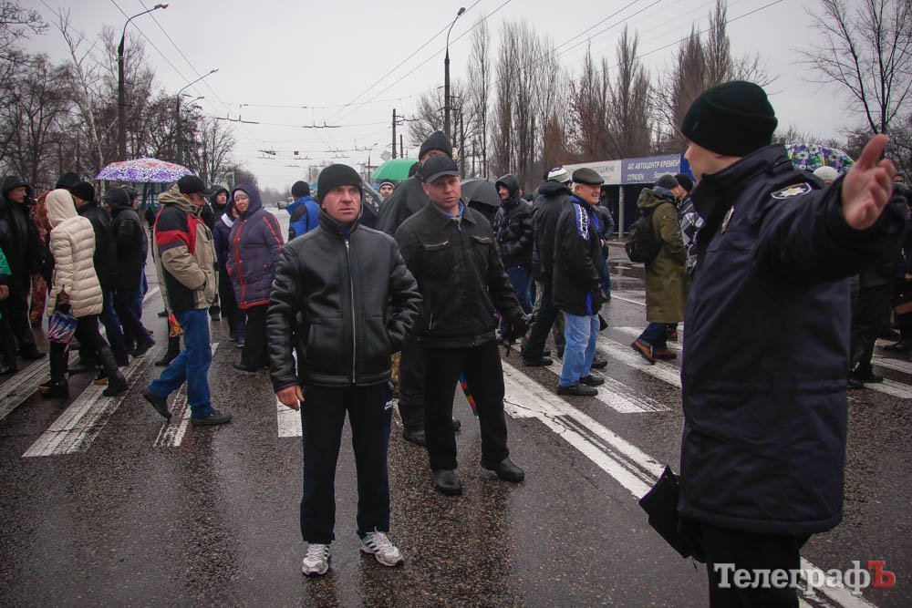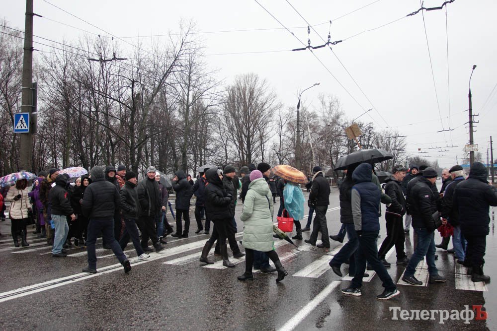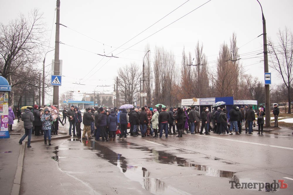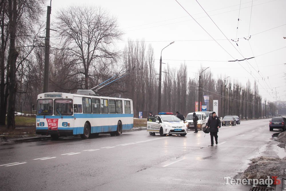 В 9.20 Жители Знаменем стали блокировать дорогу на просп. Леси Украинки в Кременчуге, в районе остановки общественного транспорта «Ул. Молодежная». Люди ходят по пешеходном переходу. Полиция перекрыла движение транспорта в ста метрах в обе стороны от перехода. Начала собираться «пробка».