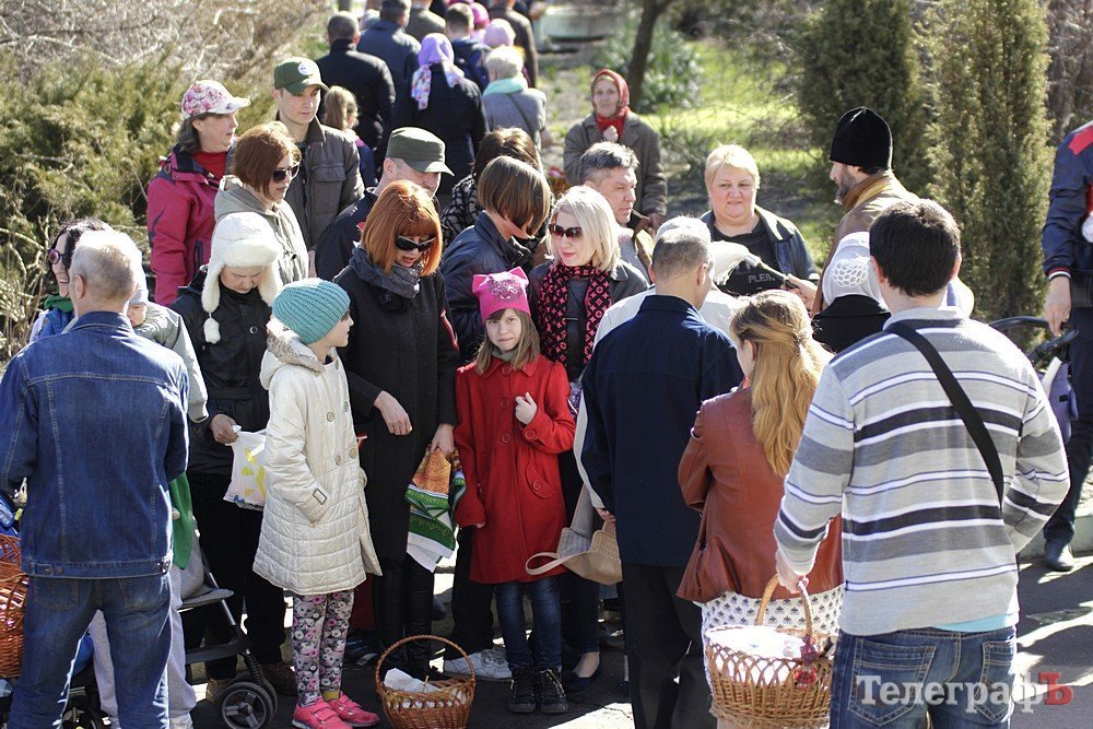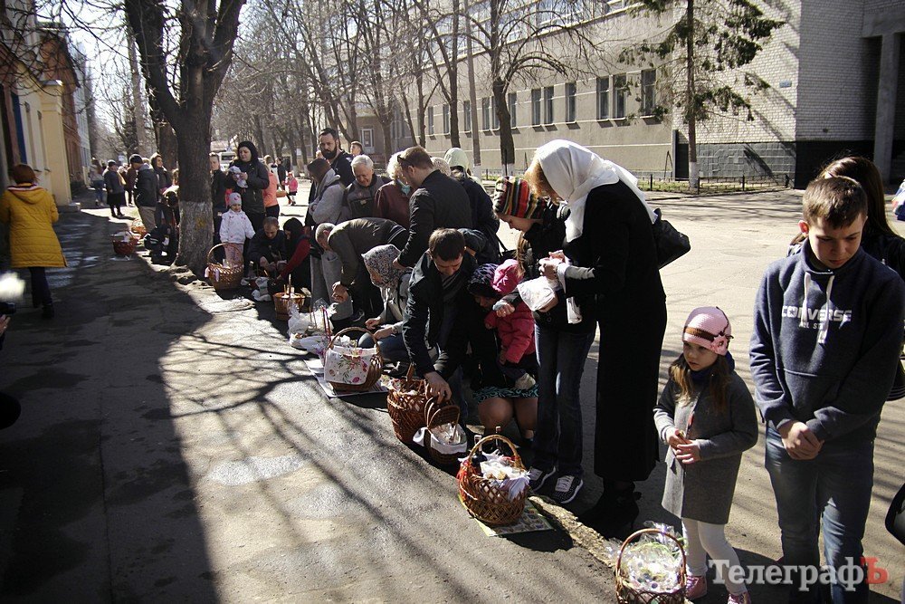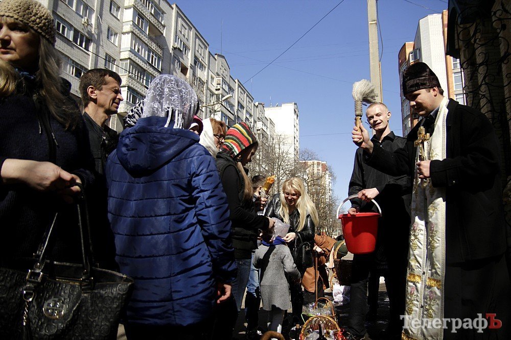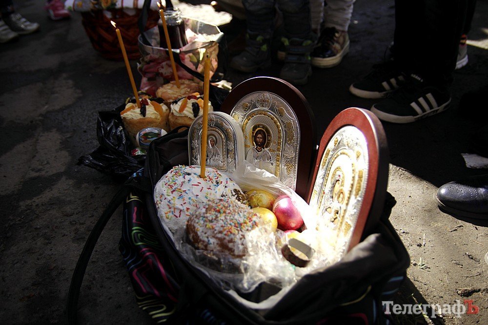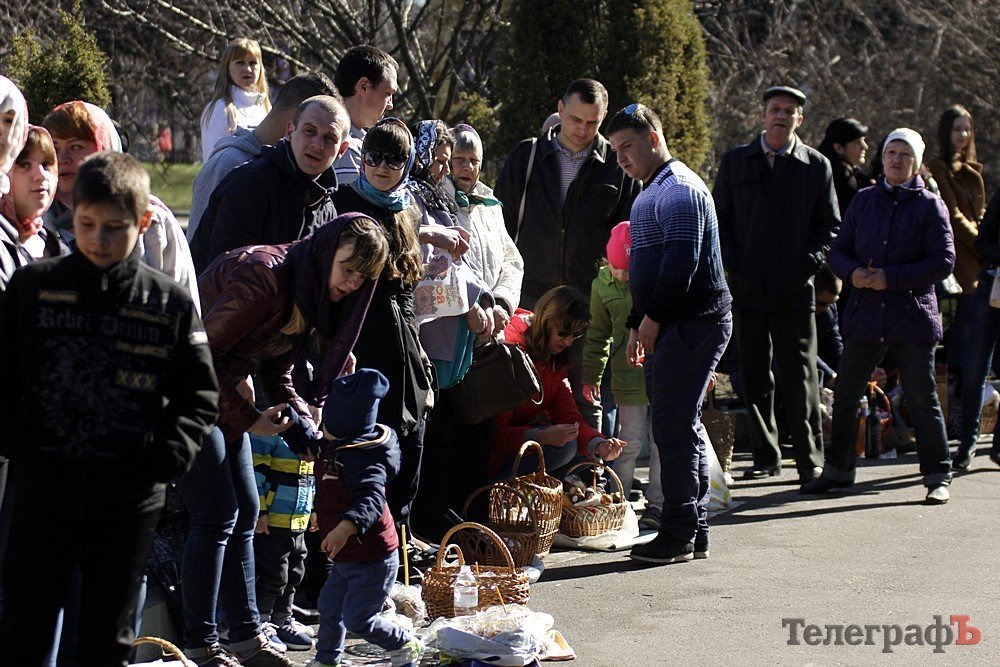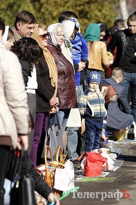 Кременчужане с самого утра уже посвятили свои пасхальные корзинки и пакеты:)