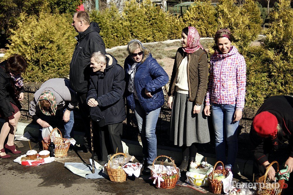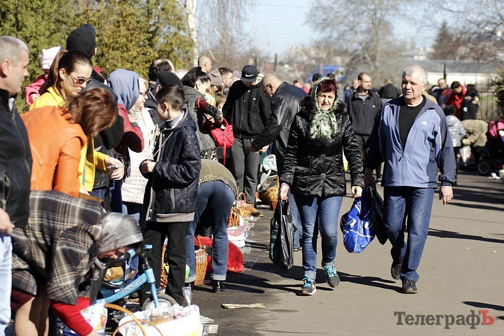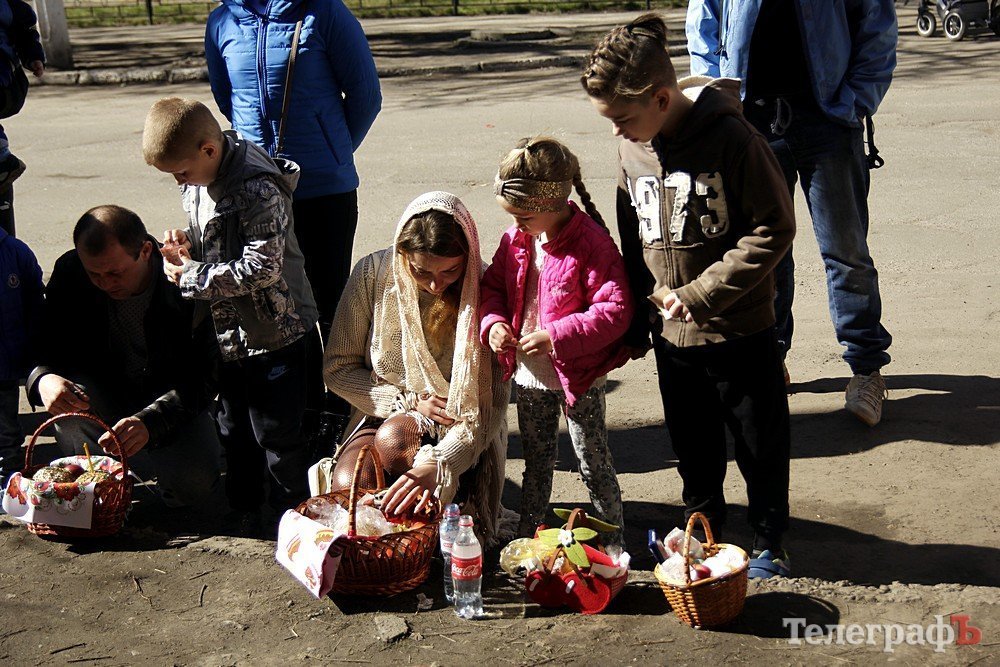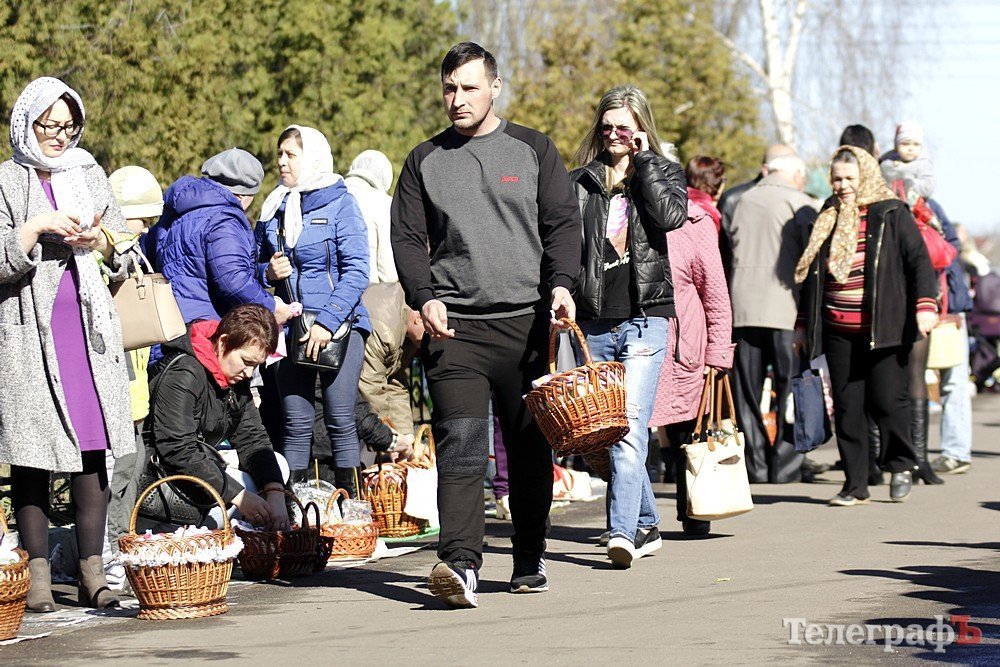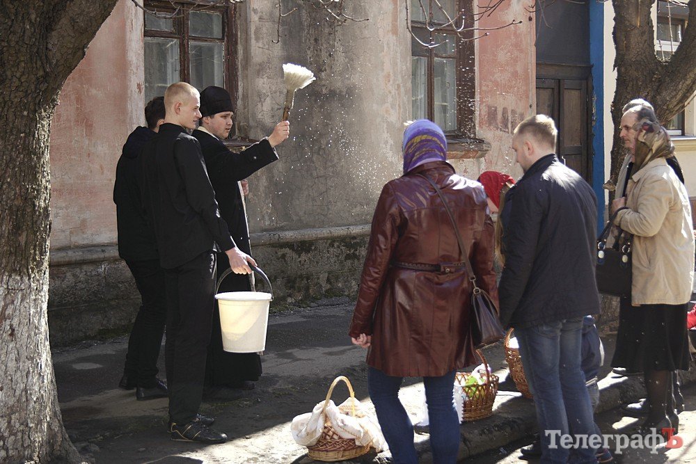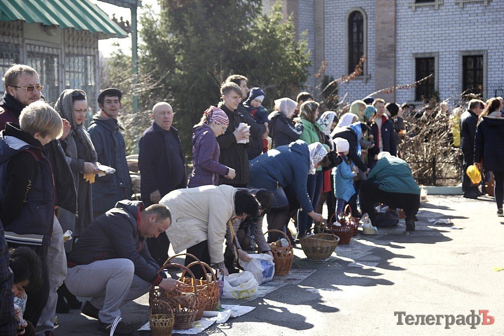 Кременчужане с самого утра уже посвятили свои пасхальные корзинки и пакеты:)
