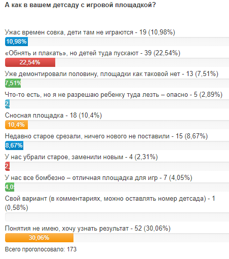 В «Телеграф» обратилась мама воспитанника детского сада №70 (район парка Мира). Пожаловалась, что деткам негде играть на площадке детсада. Старые советские «кораблики» и прочее убирают, ничего нового взамен не предлагают.