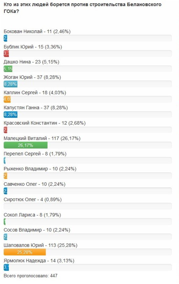 Після останніх заяв Малецького та Шаповалова «Телеграф» запропонував читачам нашого сайту відповісти на запитання, хто із зазначених у переліку осіб дійсно бореться проти БГЗК? До переліку ми внесли не лише політиків, а й активістів, вчених та інших людей, які переймалися цією проблемою.
