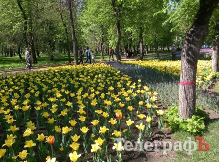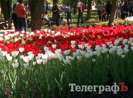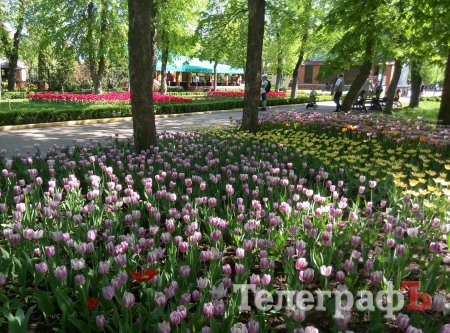У дендропарку міста Кропивницький – пік цвітіння тюльпанів. Галявини яскравих та дивовижних квітів зустрічають численних відвідувачів. Тюльпани усіх форм, кольорів та витончених відтінків милують погляд і перетворюють паркові алеї на чарівну казку. Ідея, взята із відомого голландського парку «Кекенхоф», що в Амстердамі, чудово прижилася в Україні.