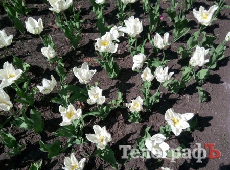 Та все одно вона недовговічна: помилуватися тюльпанами можна максимум до середини травня. Крім тюльпанів, на клумбах квітнуть гіацинти, мускарі (гадюча цибулька).