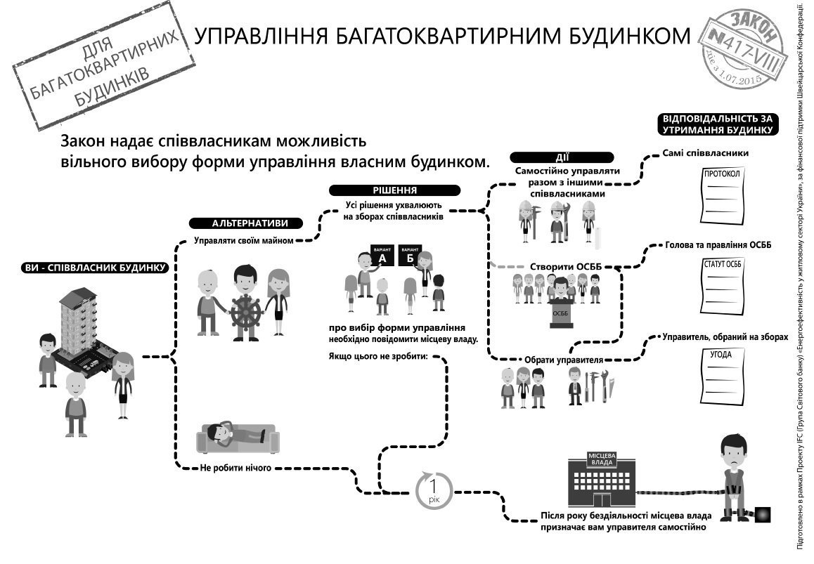 Жителям не обязательно обреченно ждать, когда исполком назначит им управителя. И даже не обязательно создавать ОСМД, чтобы определиться самим, кто будет управлять жильем: достаточно провести собрание, выбрать управителя (юрлицо), самим договориться с ним о цене услуги, оформить намерения протоколом и уведомить об этом исполком. Процедура прописана в Законе «Про особливості здійснення права власності в багатоквартирному будинку».