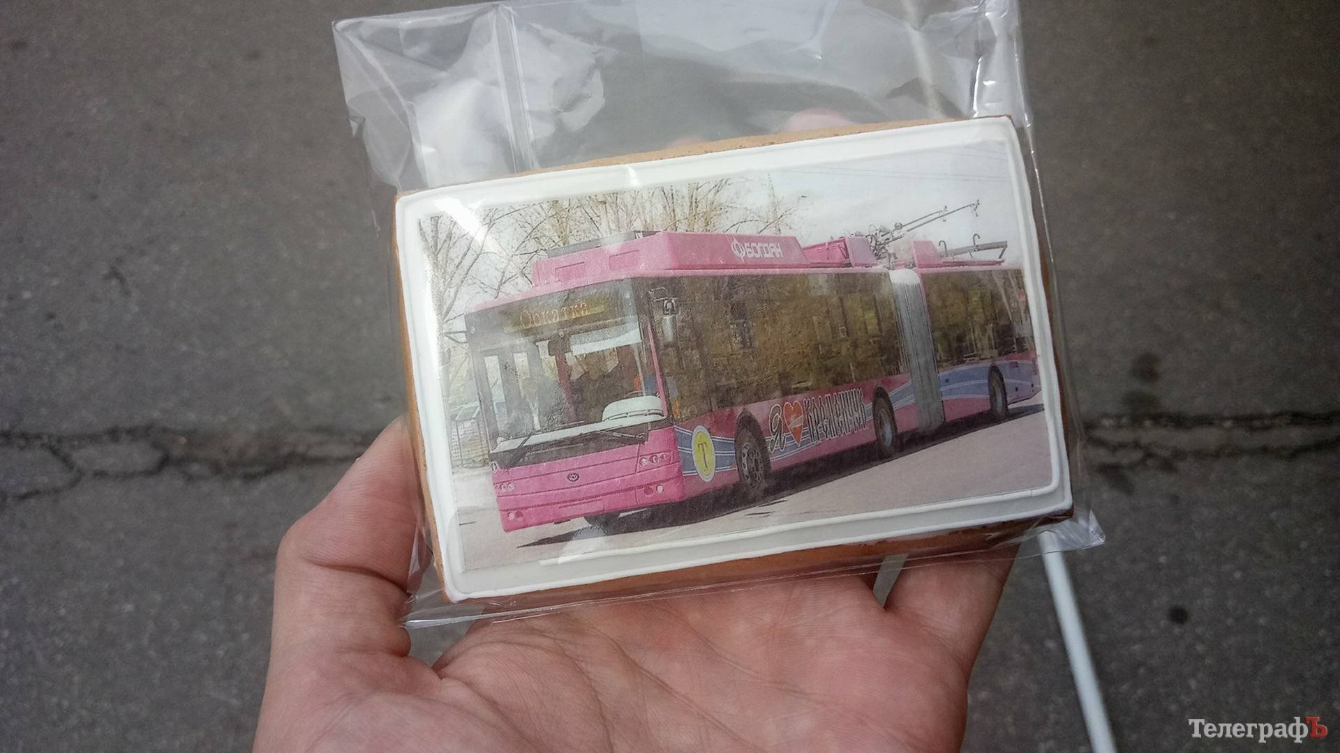 Присутсвующие на запуске получили пряник с изображением новых троллейбусов.