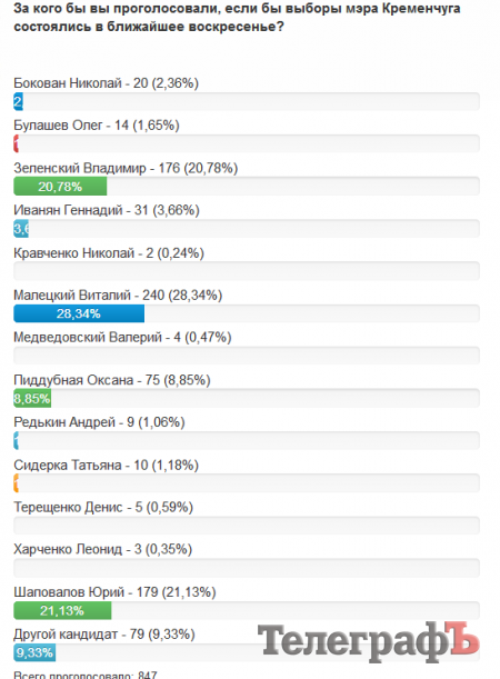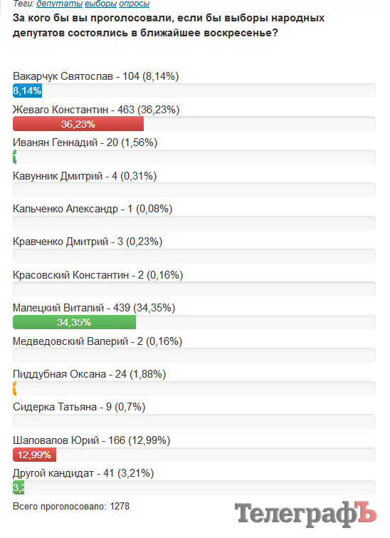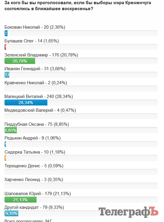 Участники голосования на сайте «Телеграфа» выбрали будущим мэром Кременчуга Виталия Малецкого, а будущим народным депутатом – Константина Жеваго.