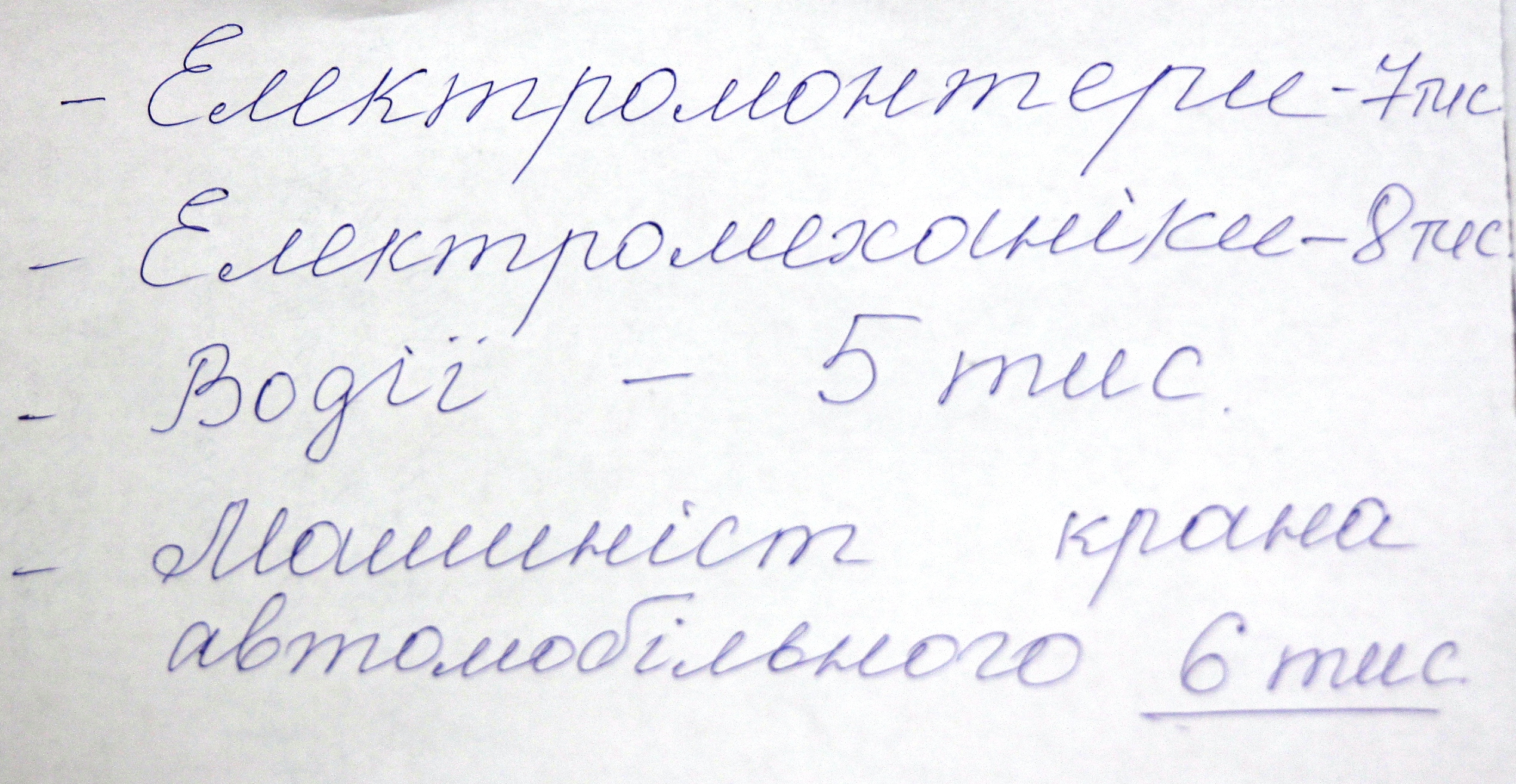 У 2016 році слюсарів, токарів і шліфувальників 5-6 розряду тут шукали на 5000 грн, ковалів 4-5 розряду на 4000 грн, а електромонтерів та різчиків на пилах і ножицях - на 3500 грн.