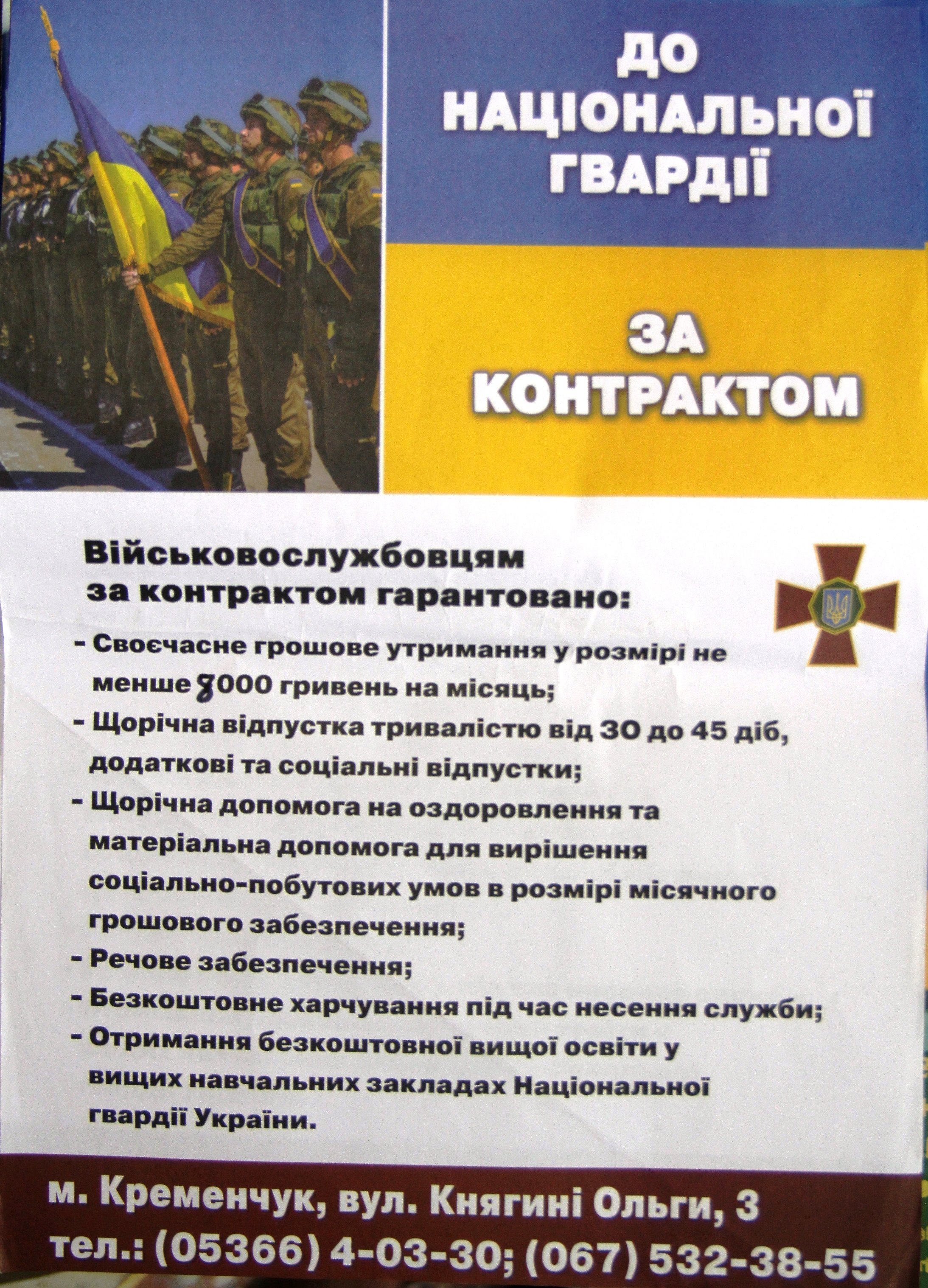 Військова частина 3059 Національної гвардії України запрошує на службу за контрактом з зарплатою від 8 000 гривень.