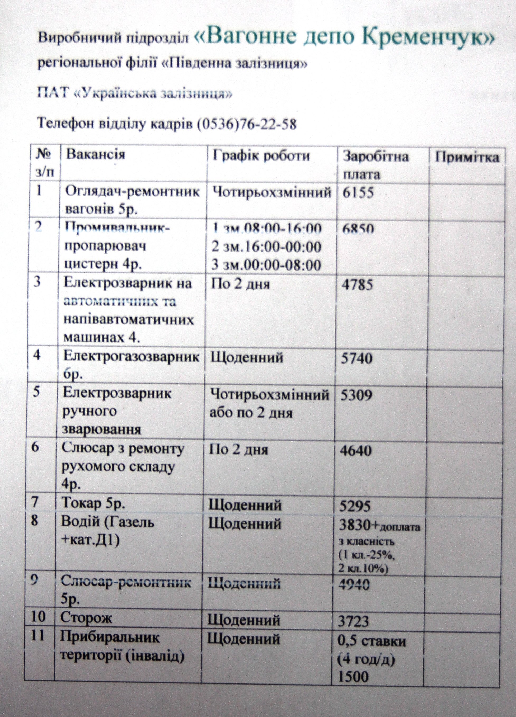 На «Локомотивному депо» не вистачає помічника машиніста на 10-12 тис. грн, та слюсаря на 5-6 тис. грн.