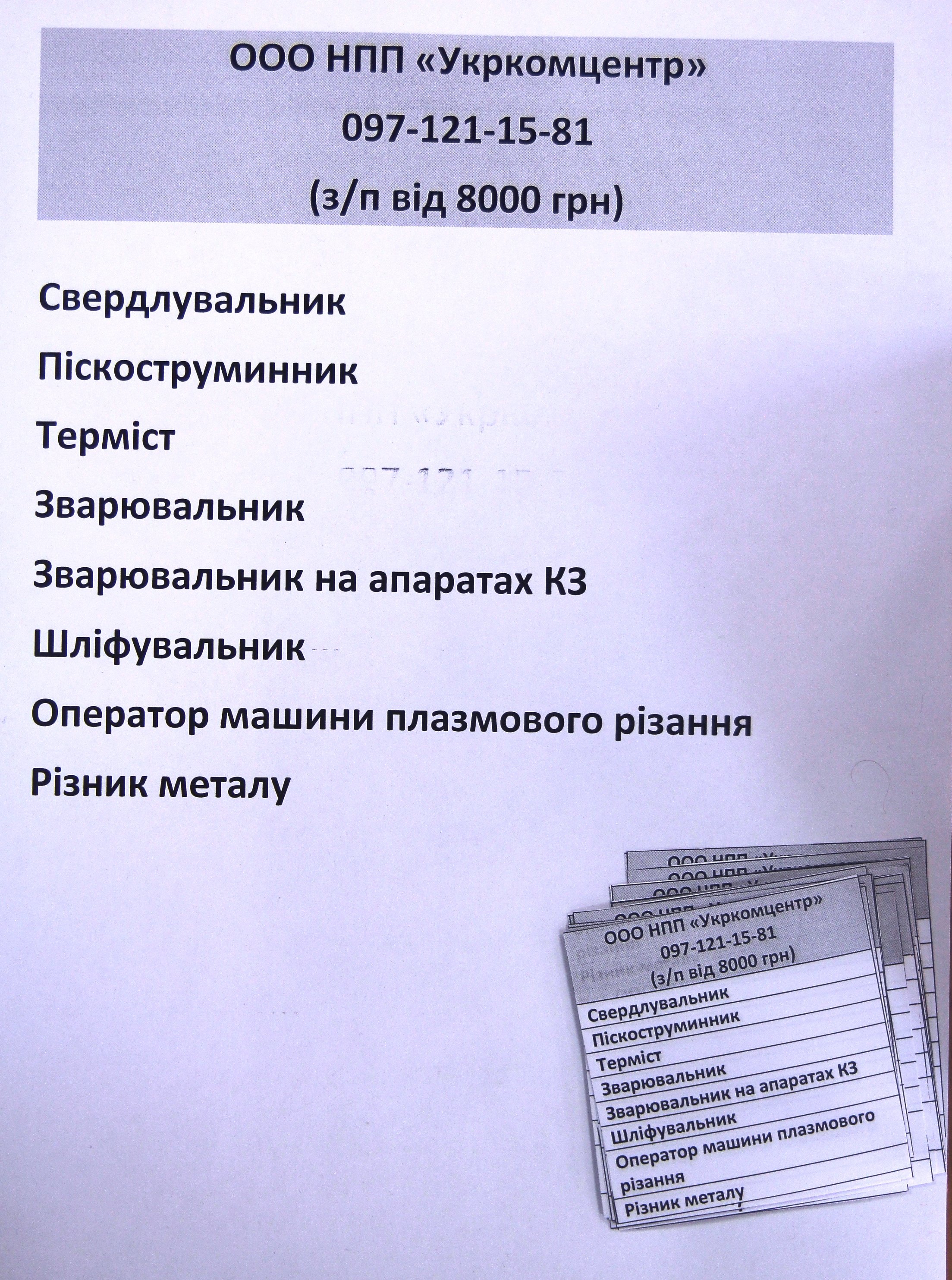 «Укркомцентр» пропонує зарплатню ВІД 8 000 гривень свердлувальникам, піскостуменникам, термістам, зварювальникам, шліфувальникам, різникам металу.